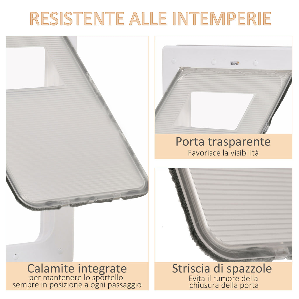 - AUTONOMIE FÜR IHRE HAUSTIERE: Die Katzenklappe ist mit einer Tür mit Magnetverschluss und einer Bürstendichtung an den Kanten ausgestattet, die die Bewegung geräuschlos macht. Die transparente Tür fördert die Sichtbarkeit.