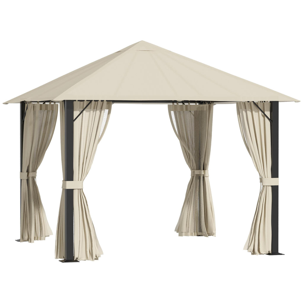 Gartenpavillon 2,97x2,97m mit Moskitonetz in Khaki Aluminium und Stahl