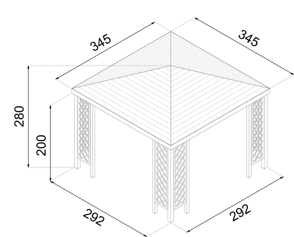 - Abdeckungsgröße cm 345x345Vertikale Pfosten cm. 9x9x200