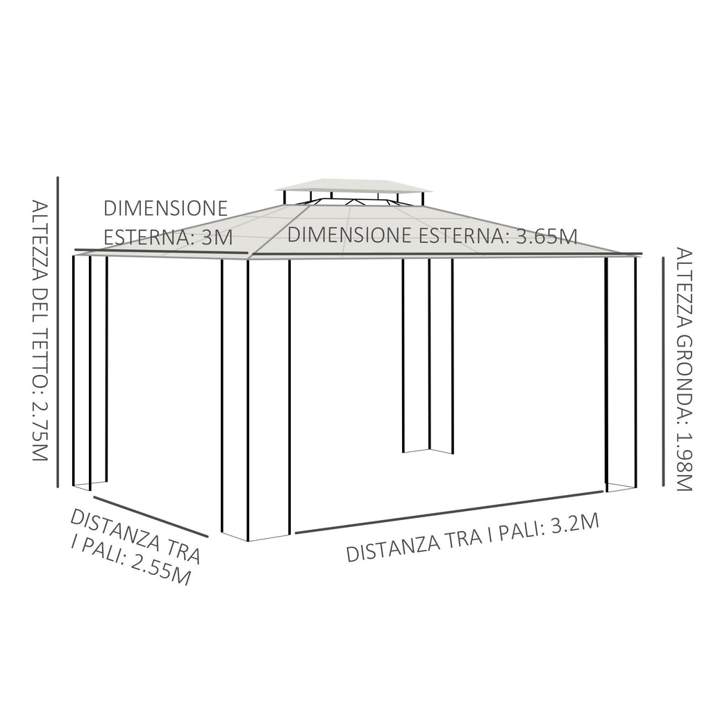 - VIELSEITIG: Der 3,65 x 3 m große Pavillon ist geräumig und ermöglicht es Ihnen, in Gesellschaft vor der Sonne geschützt zu bleiben, ohne sich eingeengt zu fühlen. Es gibt keine Wände, sodass Sie problemlos ein- und aussteigen können.