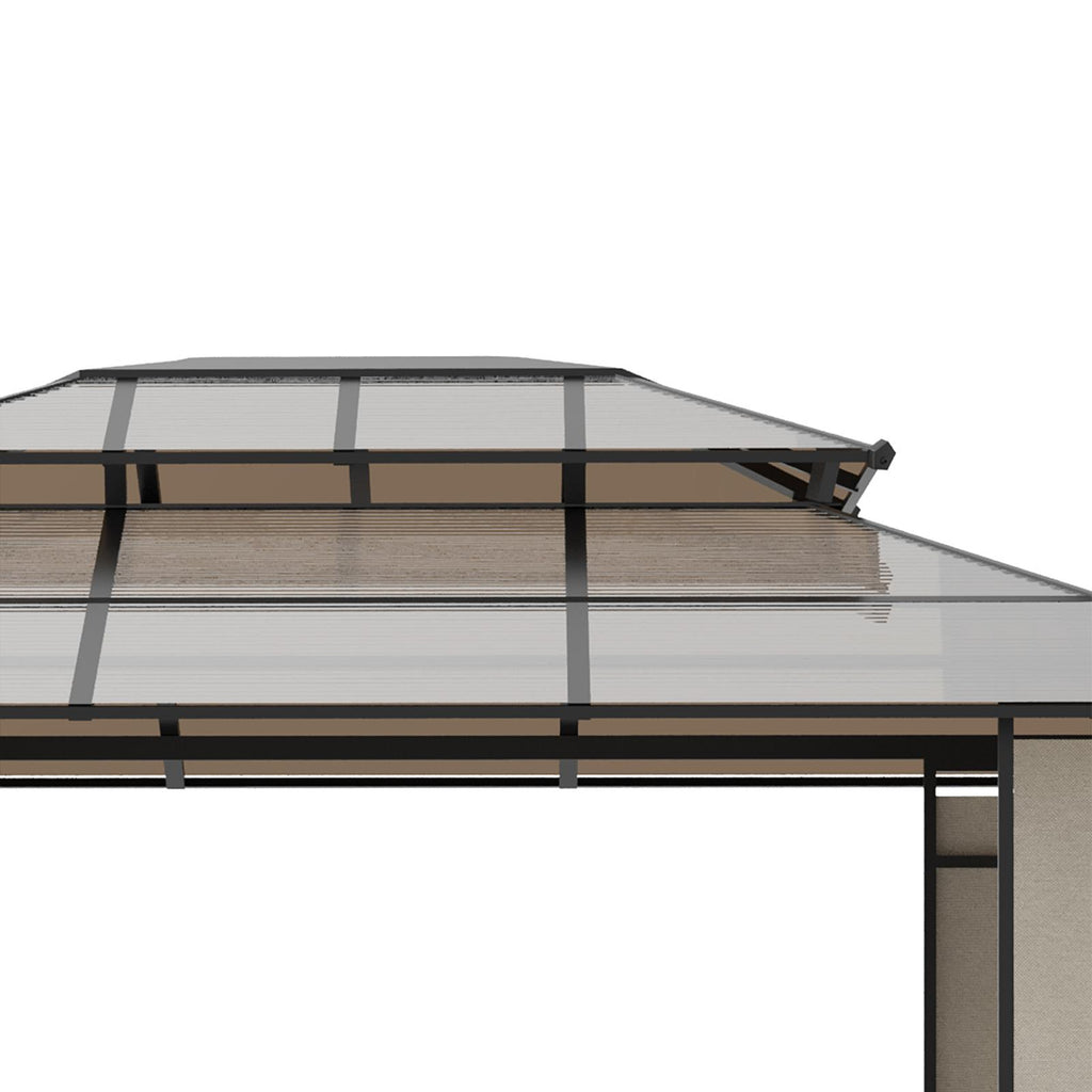 - POLYCARBONAT-DACH: Das Dach dieses Gartenpavillons besteht aus Polycarbonatplatten, die vor UV-Strahlen und leichtem Regen schützen. Das 2-stufige Dachdesign fördert den Luftstrom.