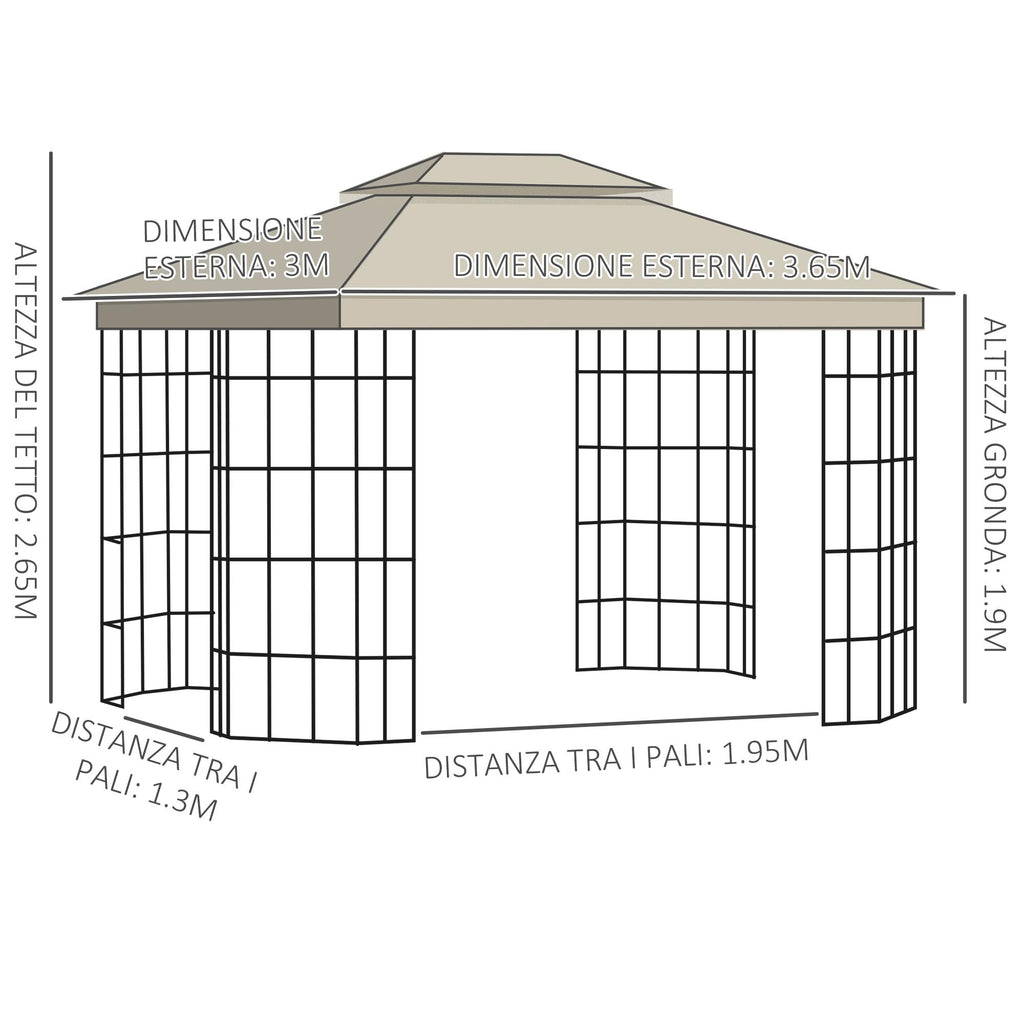 Gartenpavillon 3,65 x 3 m aus beigem Metall