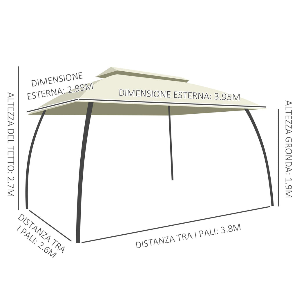 Gartenpavillon 3,95 x 2,95 m aus beigem Stahl