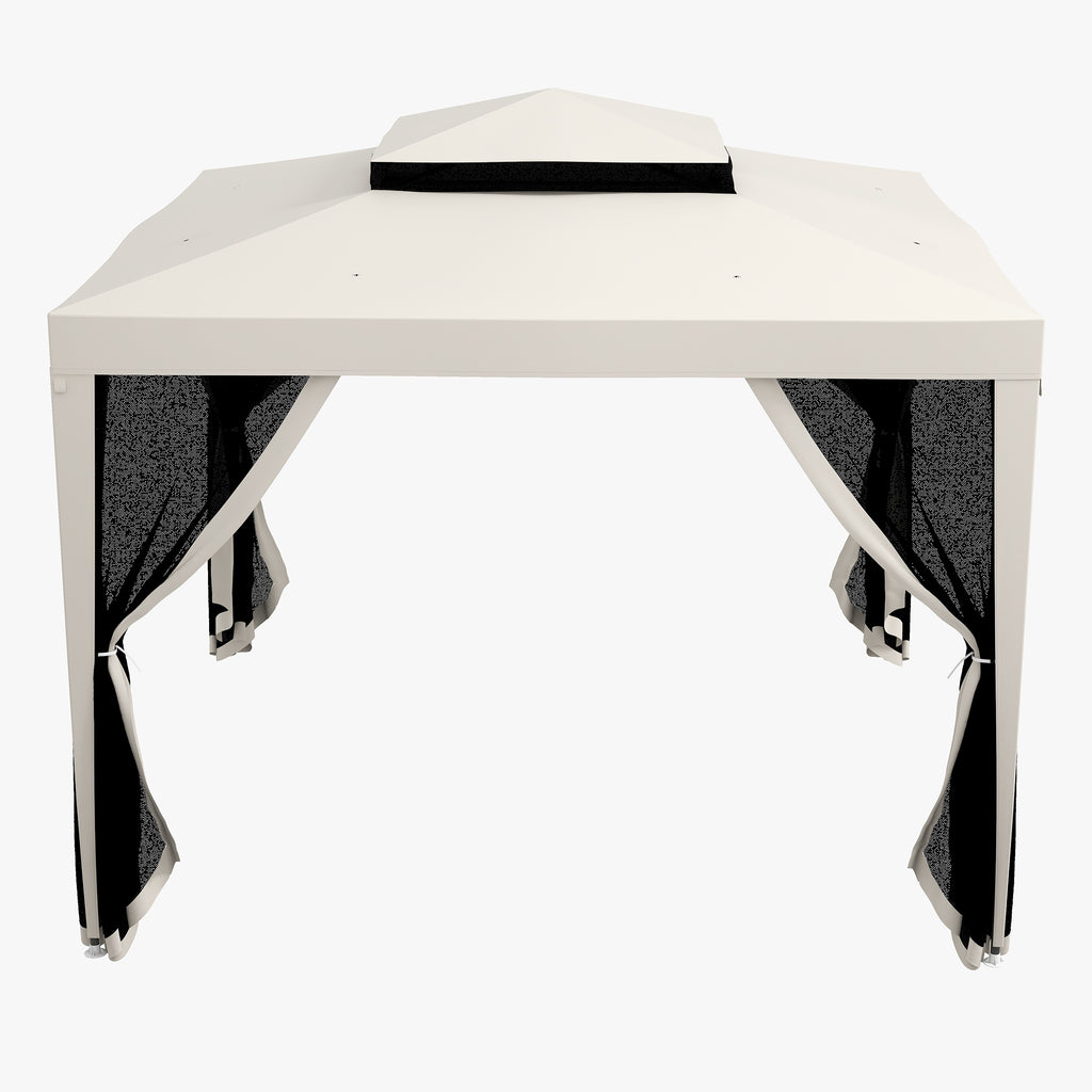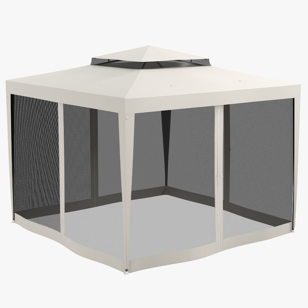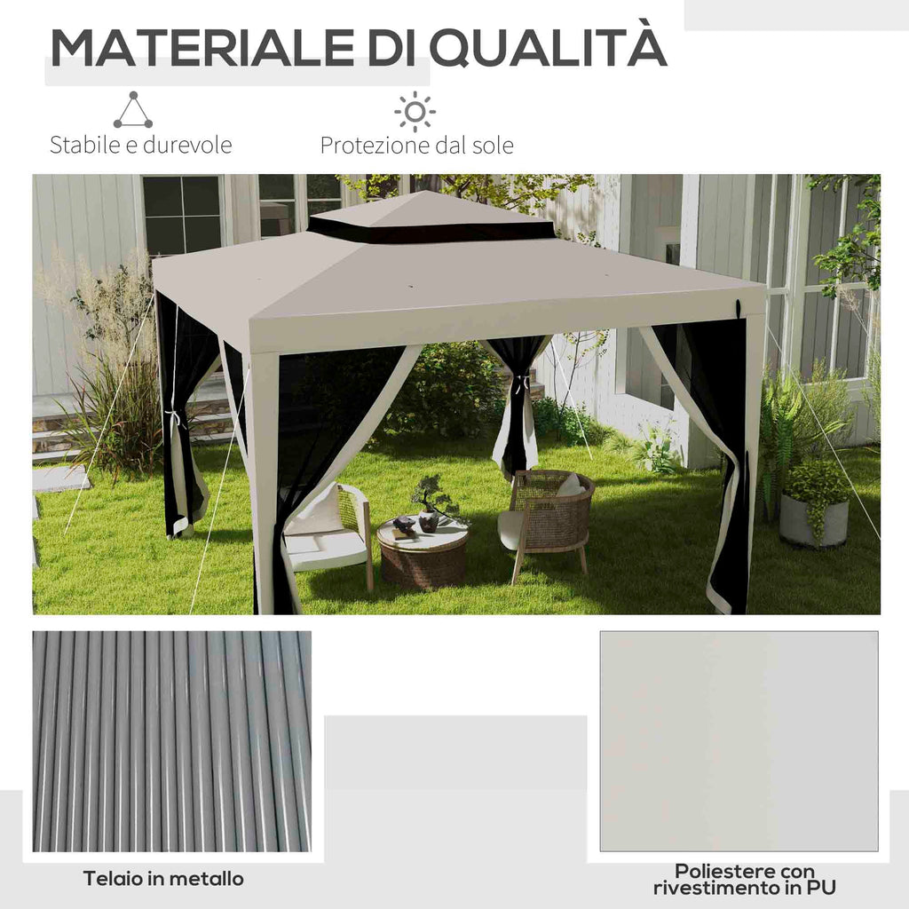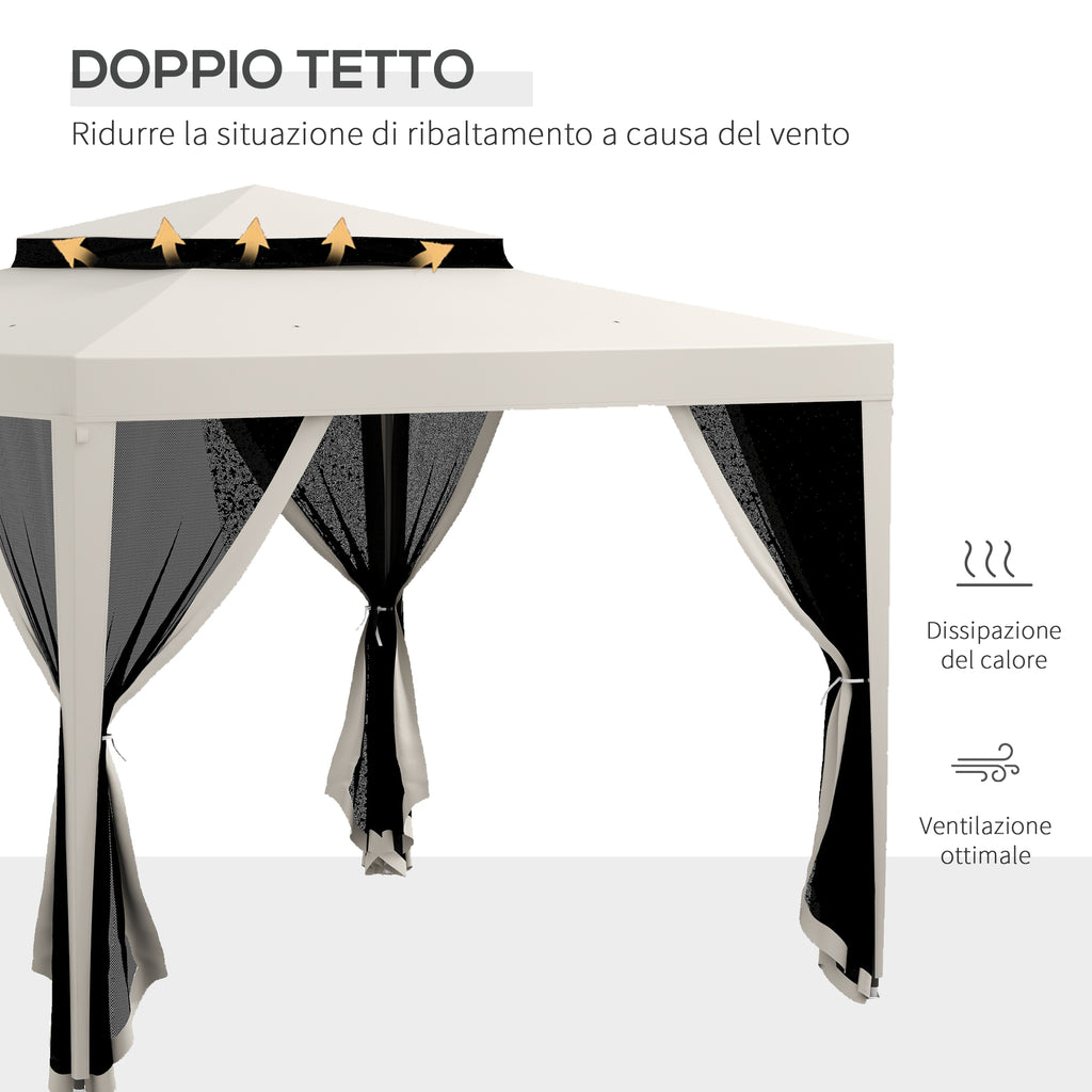 Gazebo da Giardino 300x300 cm con Zanzariera Doppio Tetto e 8 Fori in Acciaio e Poliestere Bianco Crema