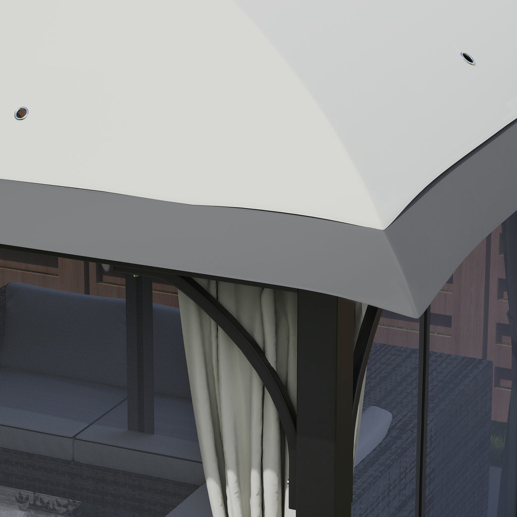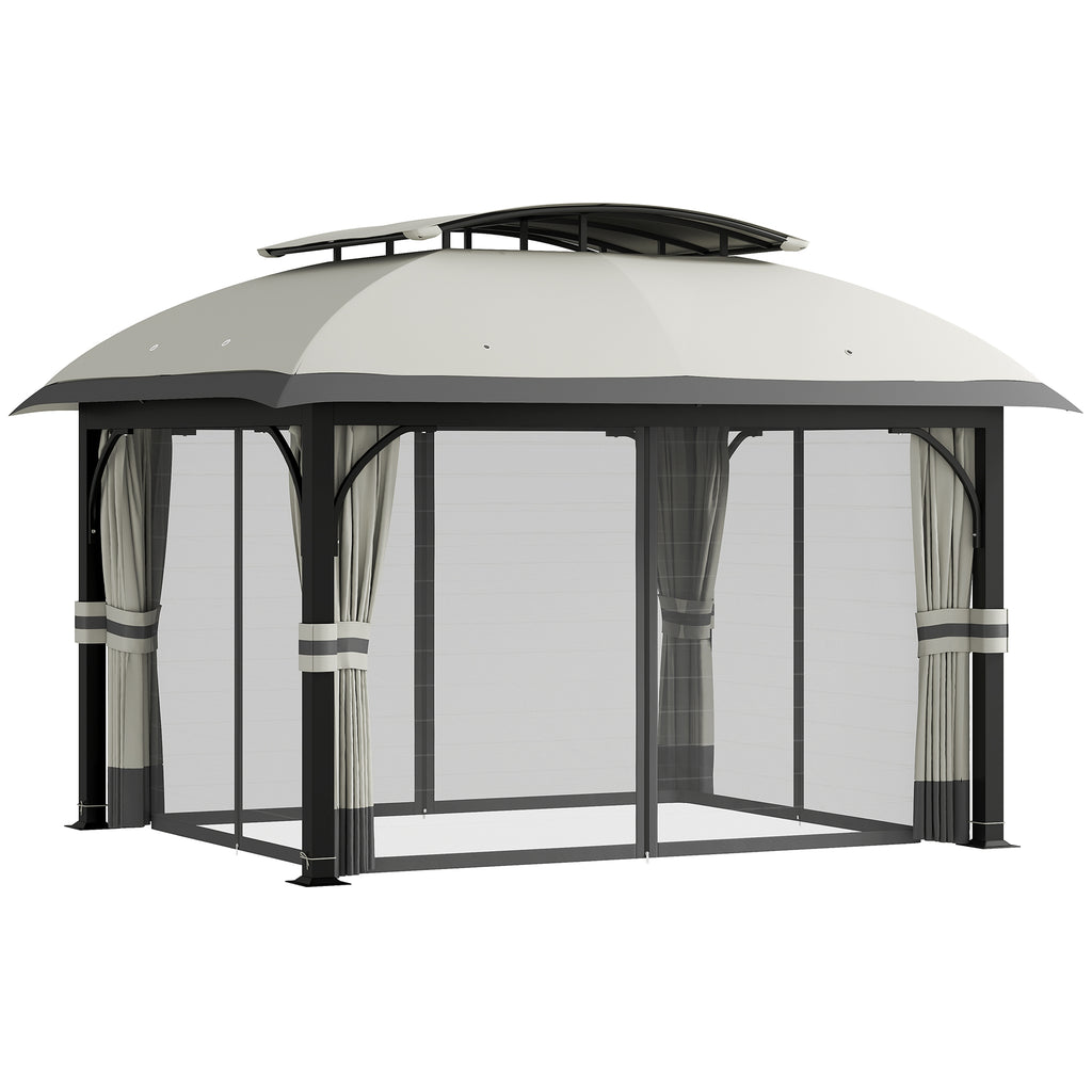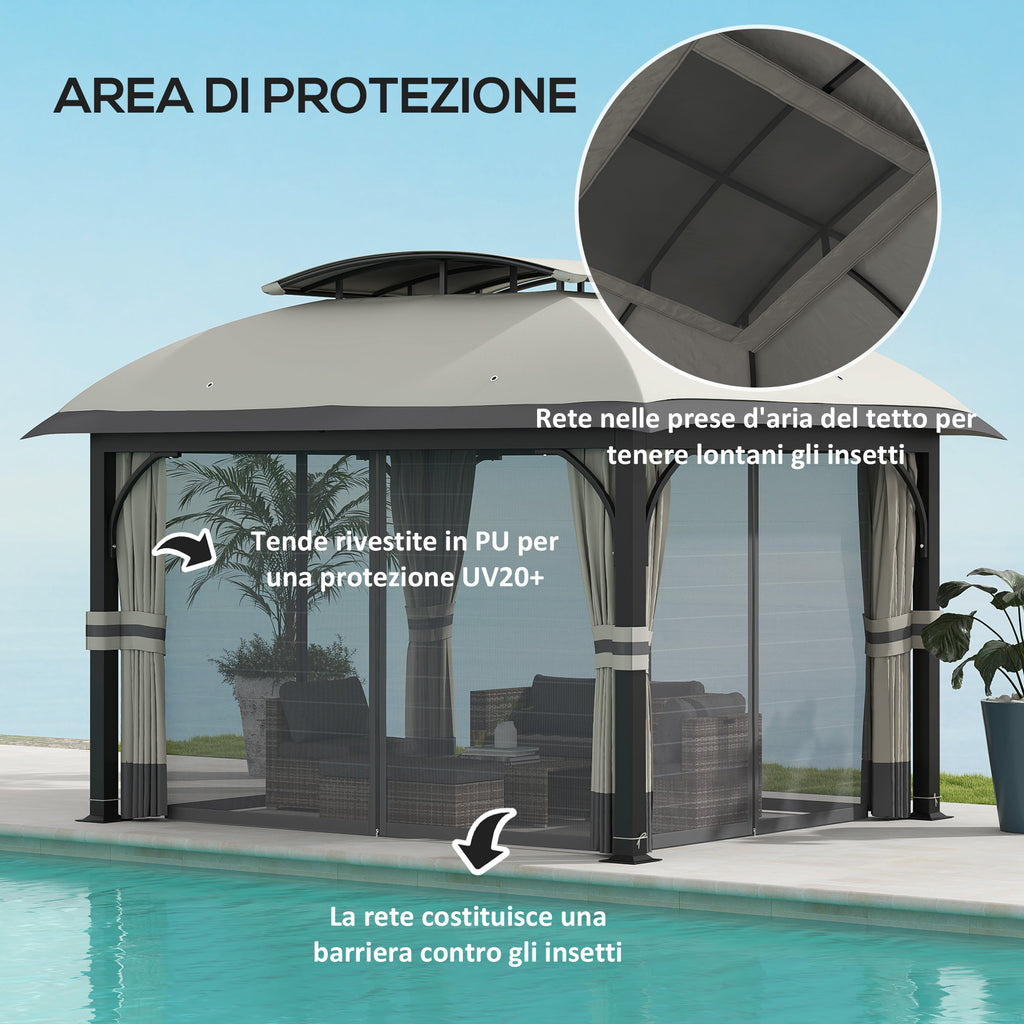 Gazebo da Giardino 395x330x294 cm con Zanzariere e Doppio Tetto in Metallo e Poliestere Grigio Chiaro
