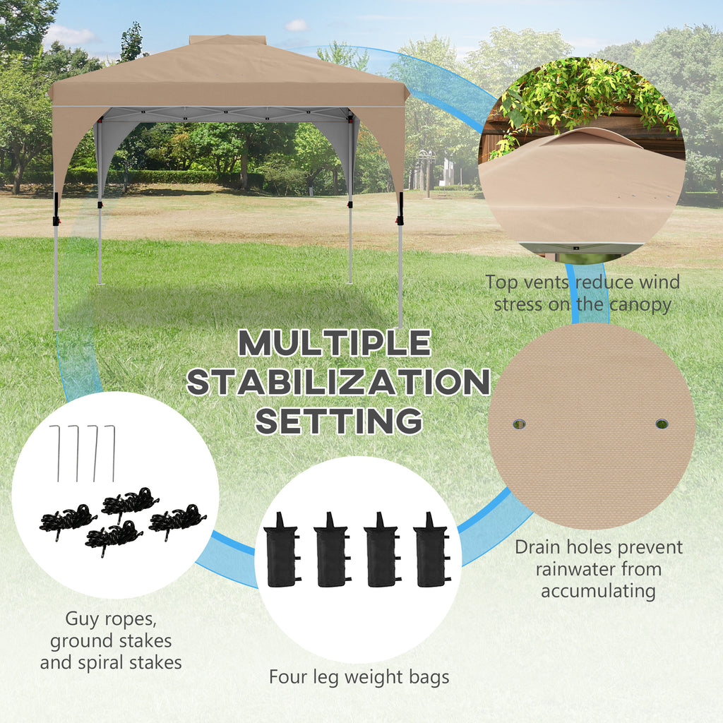 Gazebo da Giardino 3x3 m Pieghevole con Altezza Regolabile e Borsa di Trasporto con Ruote Beige