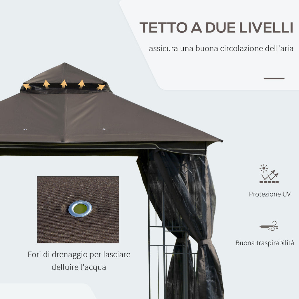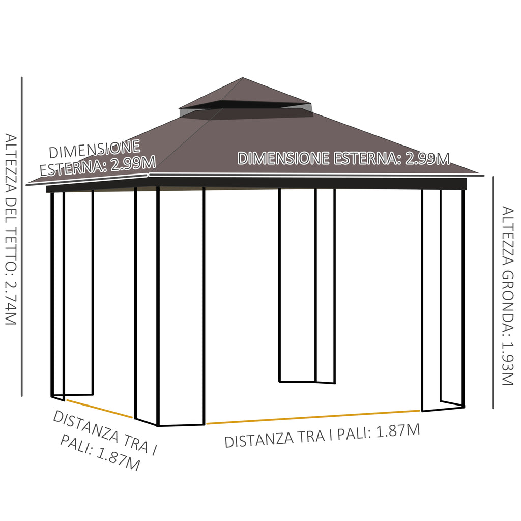 Gartenpavillon 3x3m mit Moskitonetz aus kaffeefarbenem Metall
