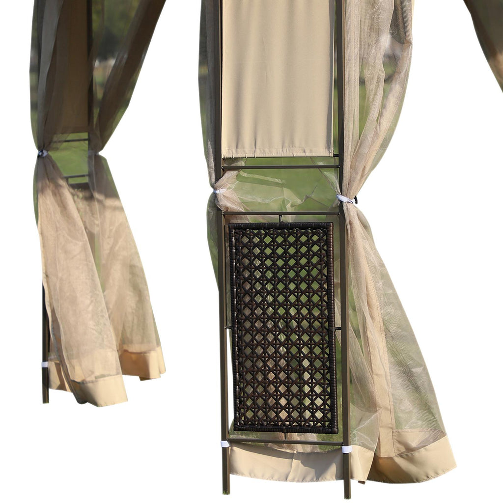 Gazebo da Giardino 3x3m in Acciaio Zanzariere e Doppio Tetto Elegante Kaki