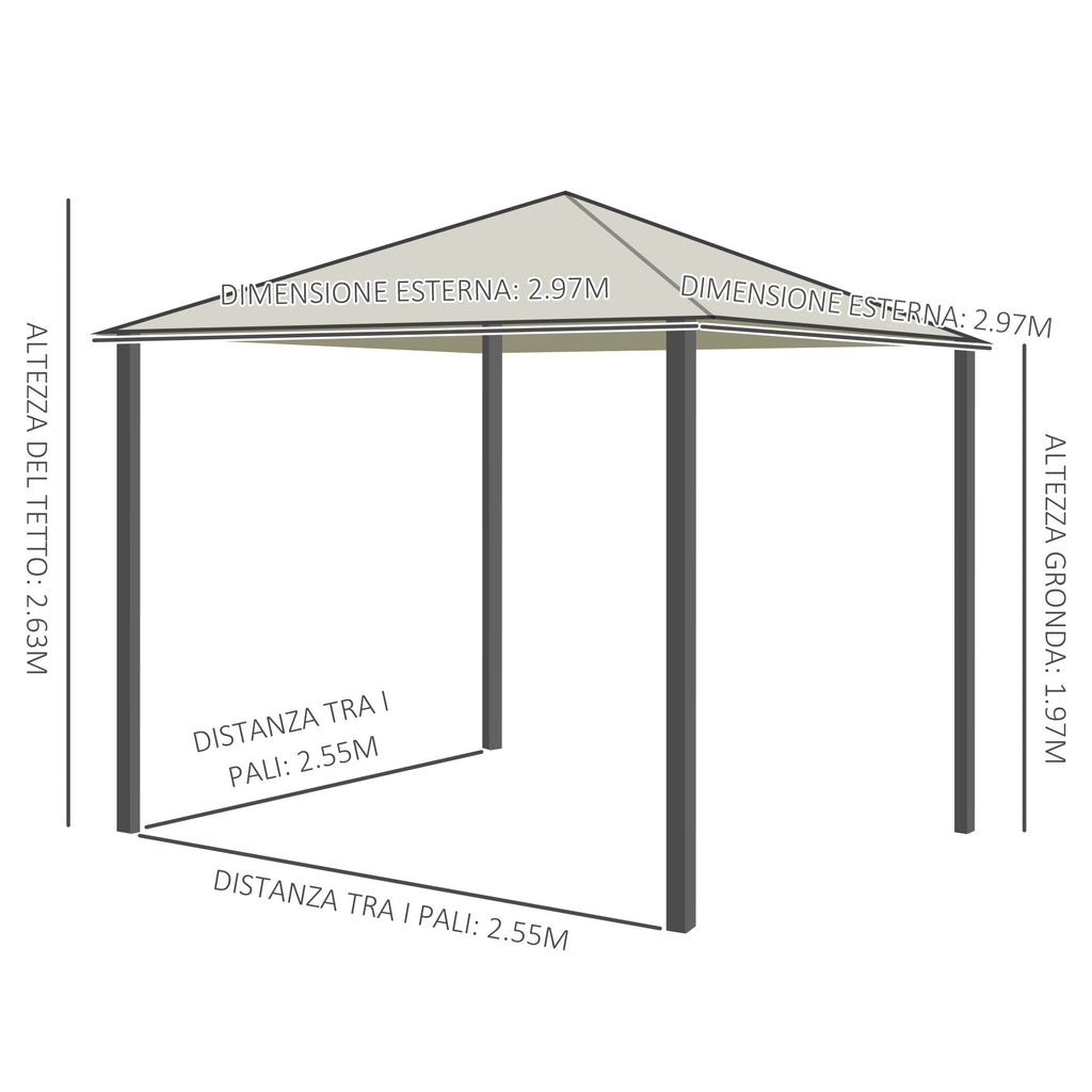 Gartenpavillon 3x3m aus Metall und cremeweißem Polyester