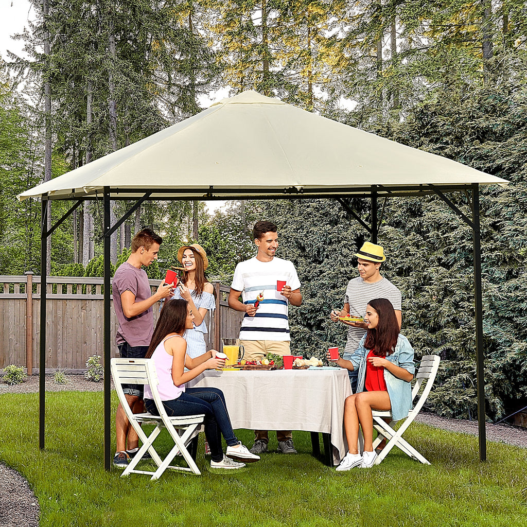 Entspannen Sie sich unter freiem Himmel und genießen Sie dank Ihres neuen Gartenpavillons die schönen, sonnengeschützten Tage. Sein minimalistischer Look wird durch einen soliden Metallrahmen und eine strapazierfähige Polyesterabdeckung mit PA-Beschichtung erreicht. Dank des Doppeldachs und der im Boden zu vergrabenden Pflöcke können Sie die Struktur am Boden befestigen und den "Windsack" -Effekt vermeiden.