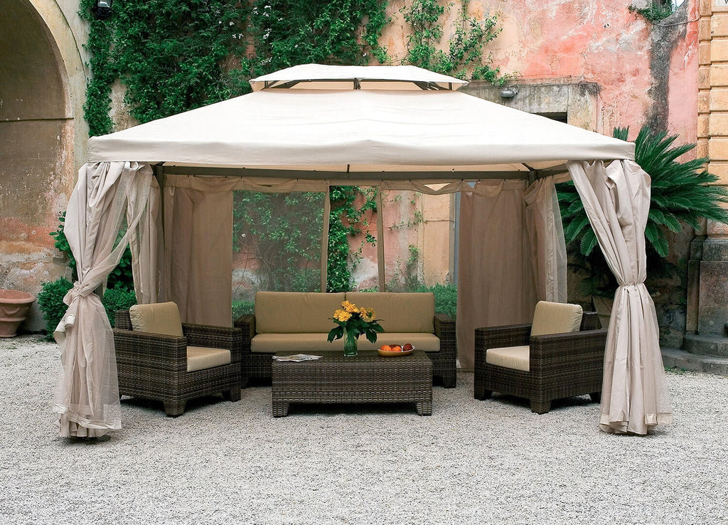 Alu-Gartenpavillon 3x4 m mit Bauer Ecru Moskitonetz