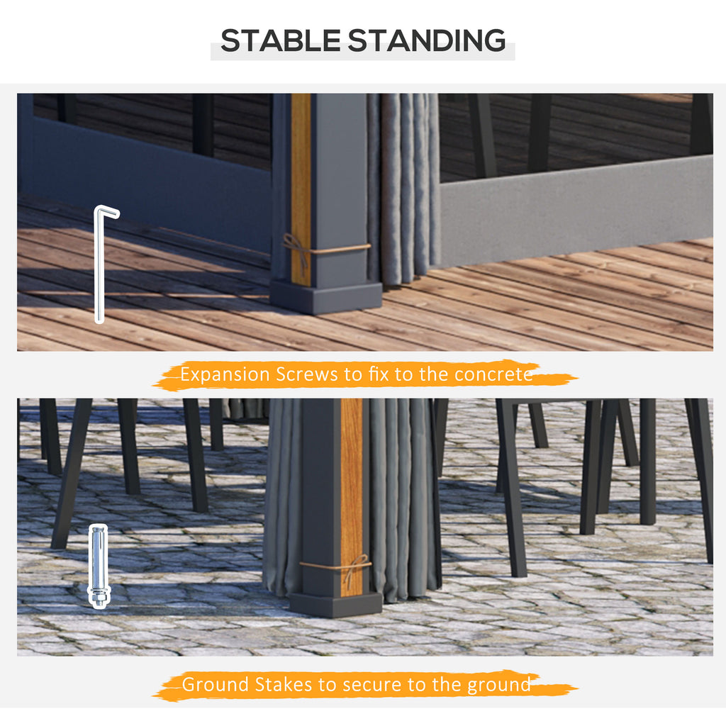 - ALLUMINIO EFFETTO LEGNO: Le colonne del gazebo da esterno sono realizzate in alluminio con effetto legno, materiale che rende la struttura stabile e resistente