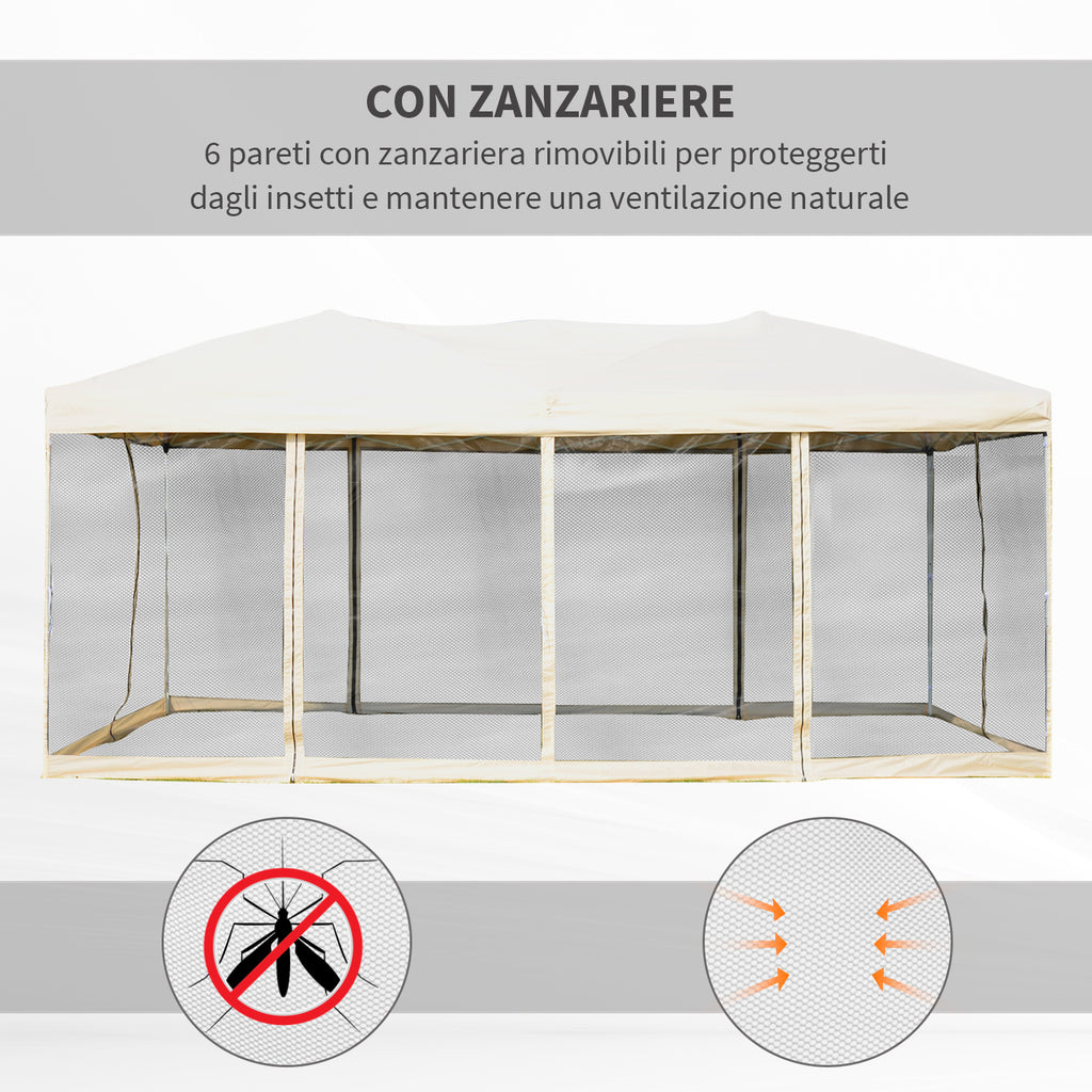 Gazebo da Giardino 3x6m in Acciaio Pieghevole con Zanzariere Beige