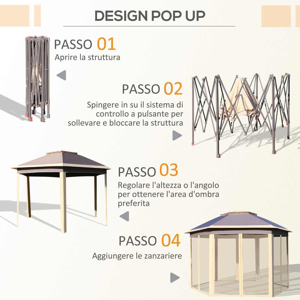 Gartenpavillon 405 x 340 x 285 cm mit beigem Moskitonetz
