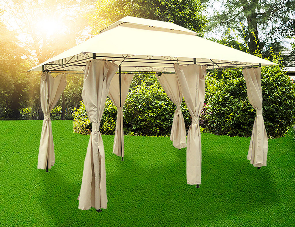 Gartenpavillon 4 x 3 m mit Seitenvorhängen aus Stahl und ecrufarbenem Polyester