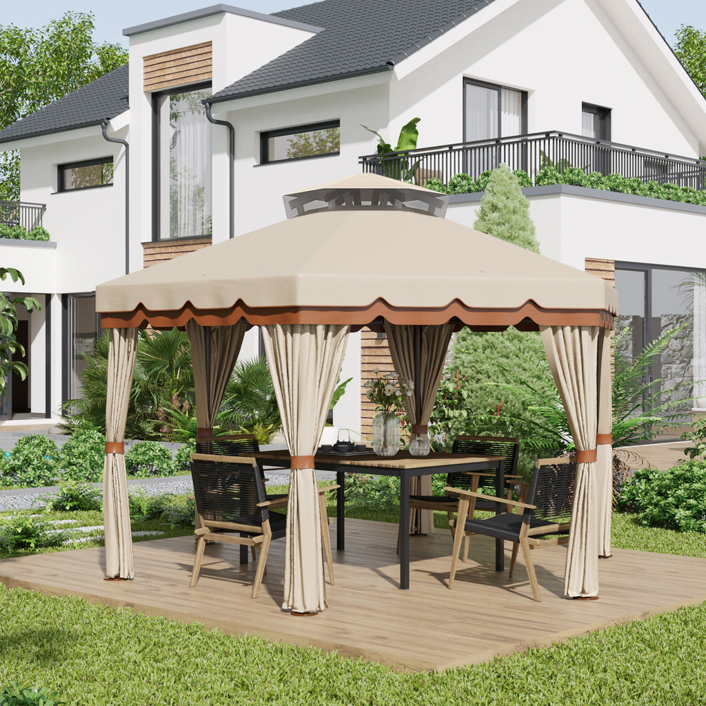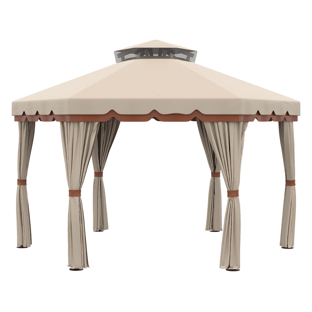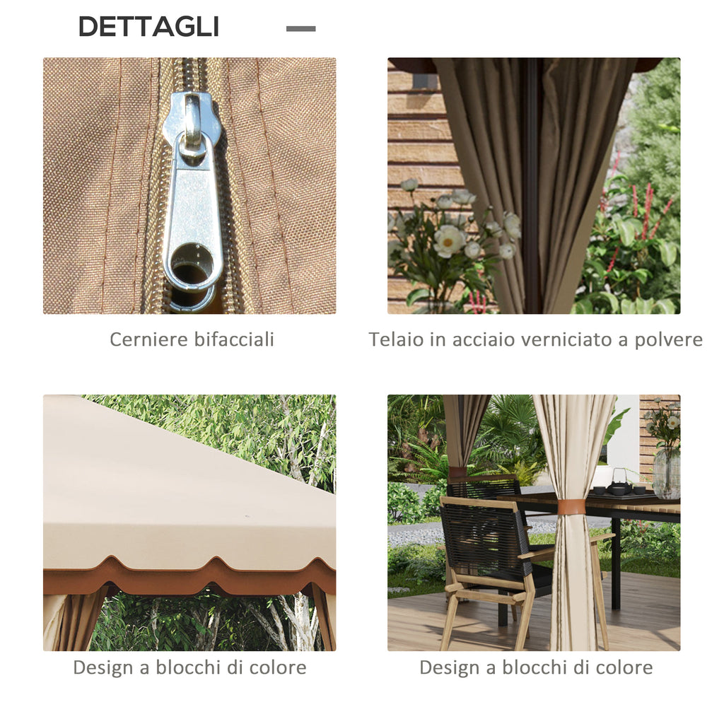 Gazebo da Giardino 4x4m con Tende in Acciaio e Poliestere Marrone