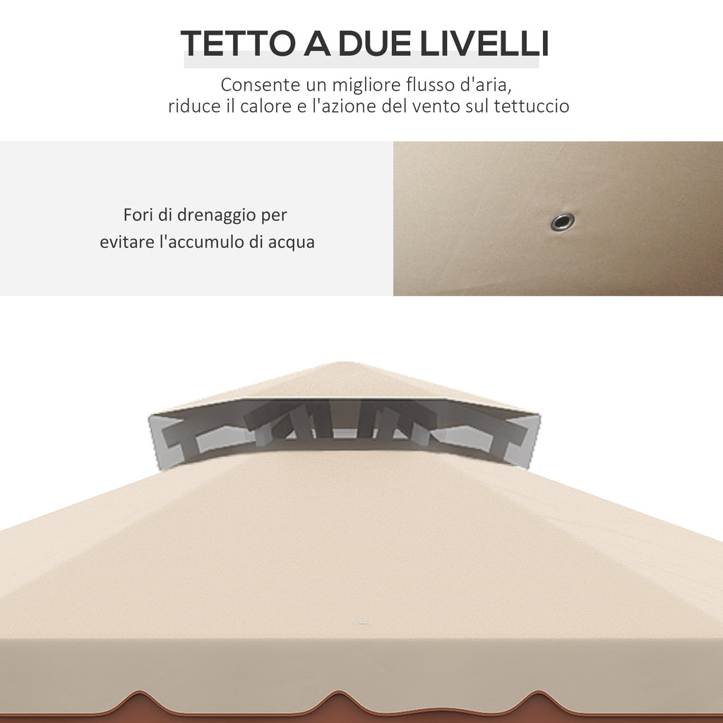 - DOPPIO TETTO: Il tetto del gazebo da giardino a due livelli favorisce una migliore circolazione dell'aria e dissipazione del calore