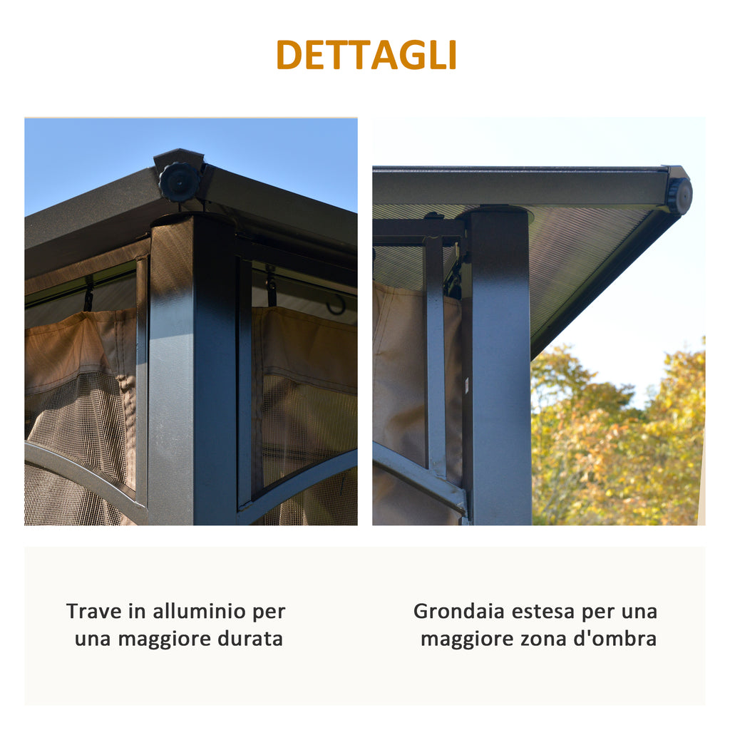 Gartenpavillon mit Moskitonetz 3,6 x 3 m, braunes Polycarbonatdach