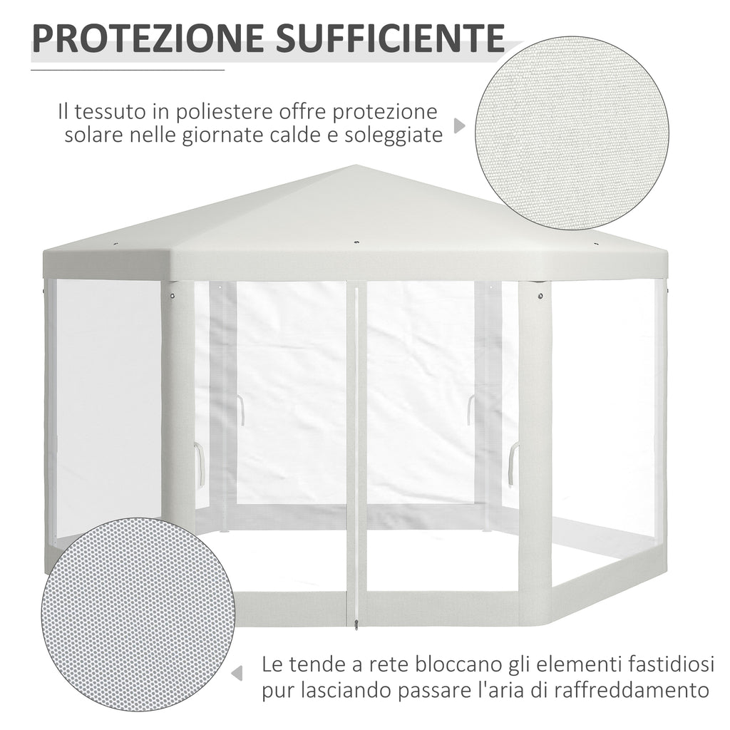 Gazebo da Giardino Esagonale con Doppio Ingresso 3.94x3.94x2.5 m in Metallo e Poliestere Crema