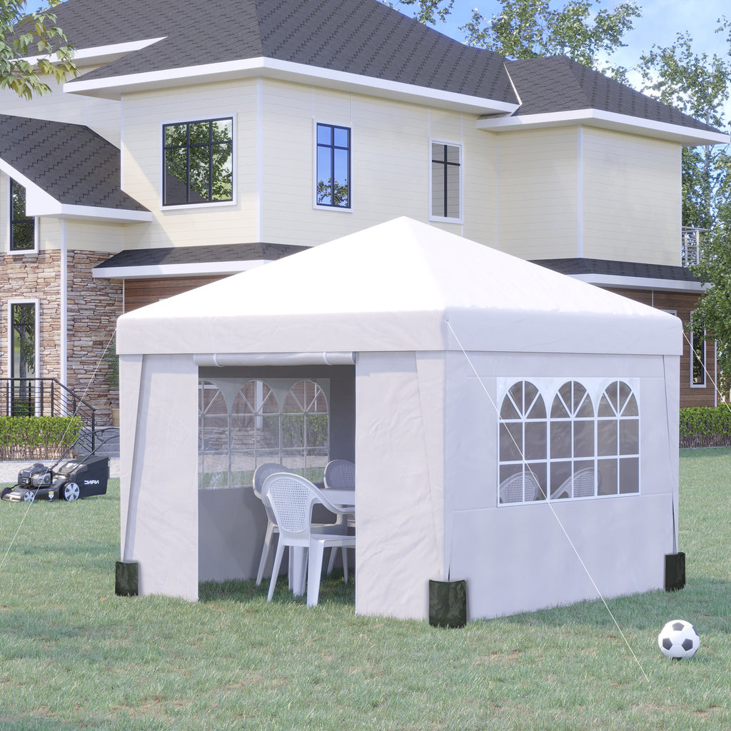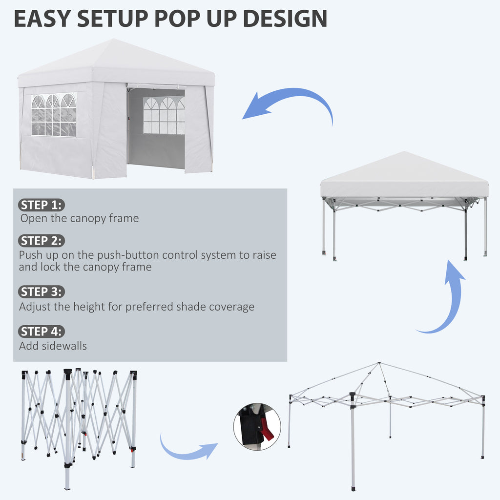 Gazebo da Giardino Pieghevole 3x3m con Design Pop Up e Finestre in Tessuto Oxford Bianco