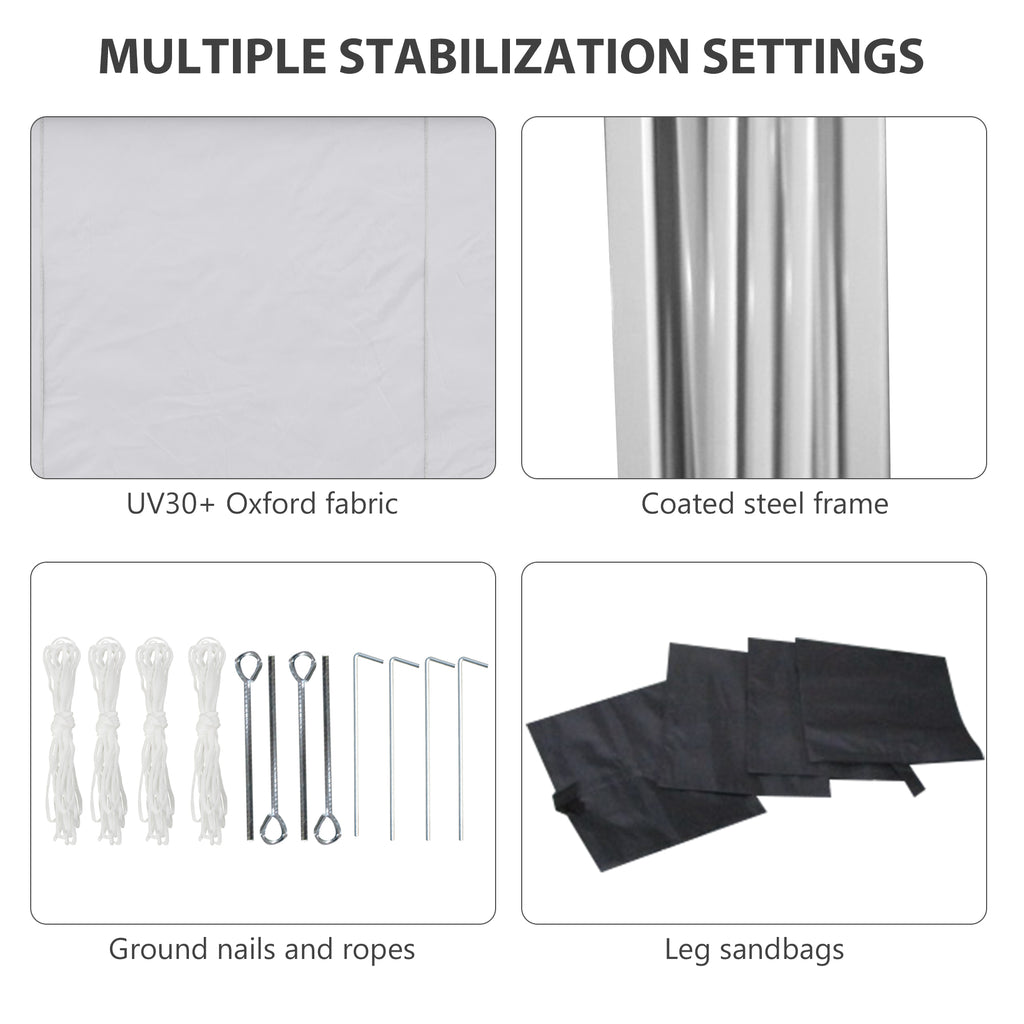 - MASSIMA STABILITÀ: Il gazebo per feste è fornito con picchetti a terra, corde antivento e sacchetti di sabbia, per renderlo più stabile. Il telaio in acciaio garantisce inoltre massima robustezza
