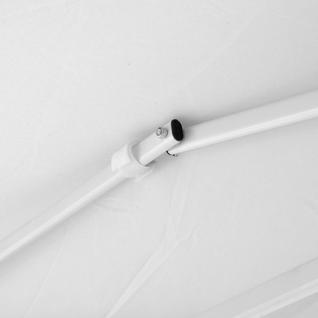 Pavillon mit Pantograph-Schnellöffnungs-/Schließsystem, Belüftung, 8 Heringen, Seilen und Transporttasche, Struktur aus weiß pulverbeschichtetem Eisen, höhenverstellbare Beine in 3 Positionen, Bezugsstoff Polyester gr. 180/m2 in weiß, Eckbeinstoff in Polyester gr. 140/qm weiße Farbe, Nylonverbinder. cm 300 x 300 x h 270 oberer Stangenabschnitt 25 x 25 x 0,6 mm unterer Stangenabschnitt 20 x 20 x 0,6 mm Abdeckstangenabschnitt 10 x 18 x 0,5 mm