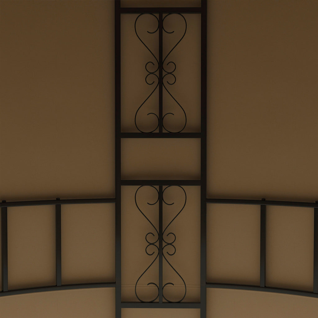 Gazebo da Giardino Rotondo Ø3m con Tende e Prese d'Aria in Metallo e Poliestere Beige