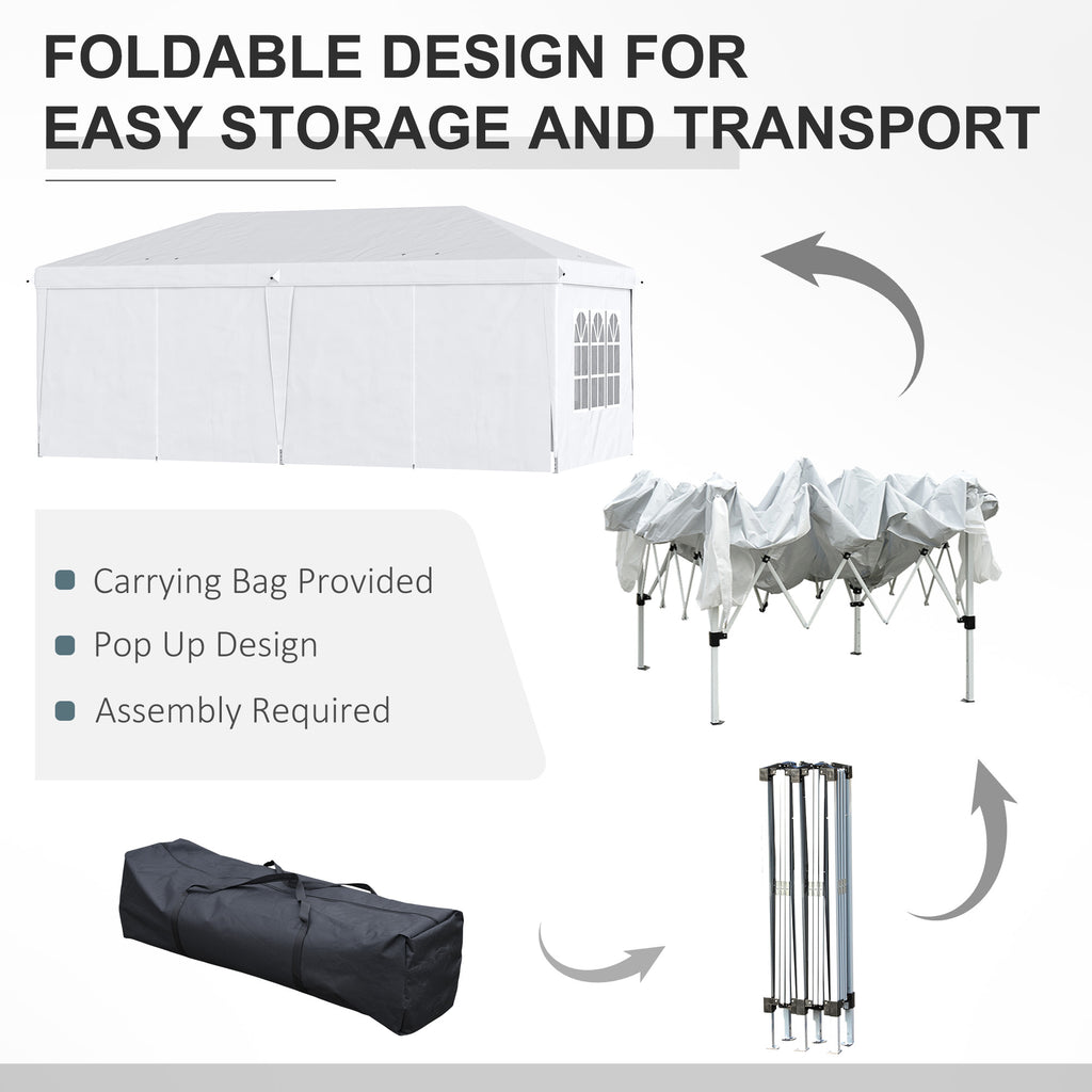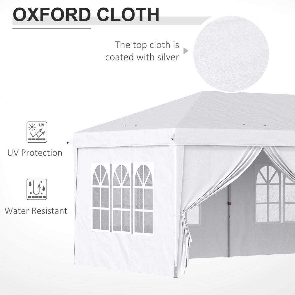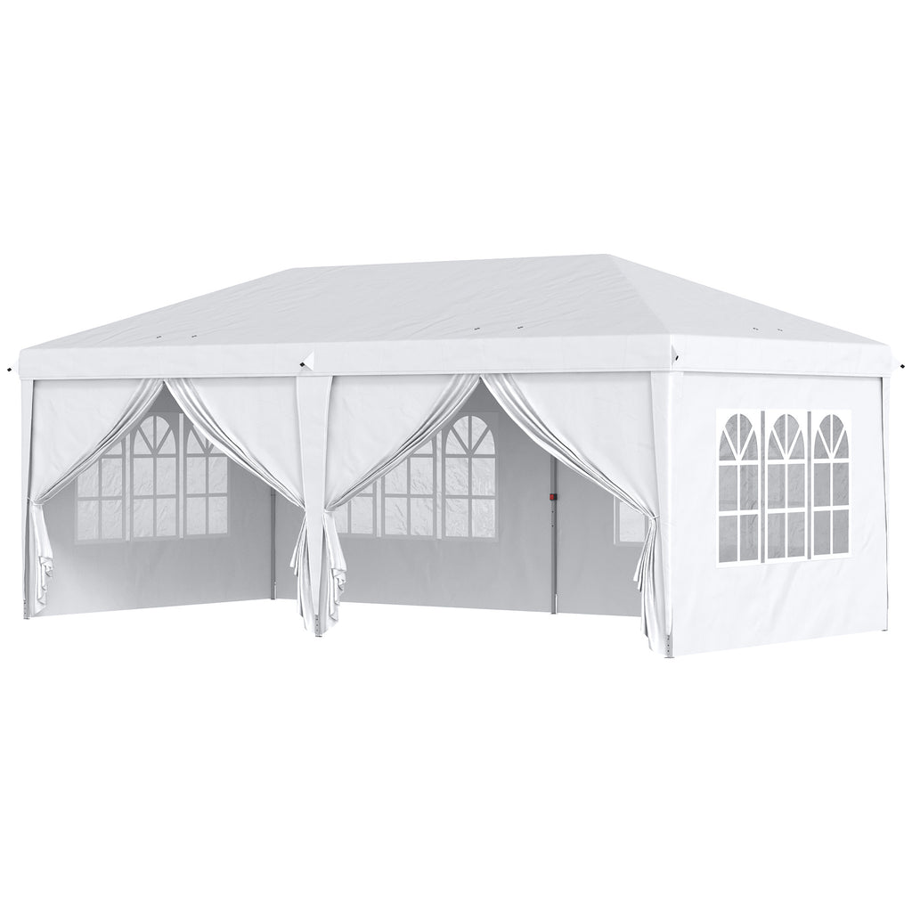 Gazebo Pieghevole 6x3m Funi e Picchetti Bianco
