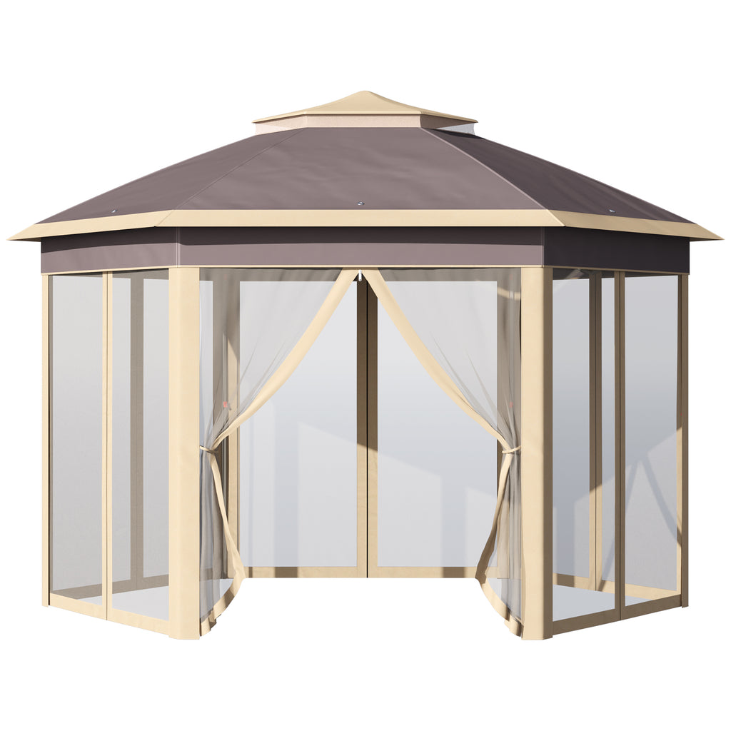 Gazebo Pieghevole da Giardino 4,05x3,4x2,85m con Zanzariera in Metallo e Tessuto Oxford Beige
