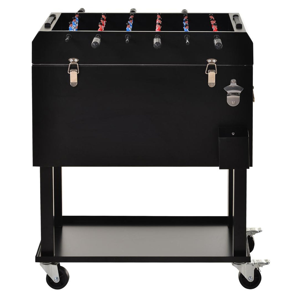 Tragbare 65-l-Kühlbox mit Tischfußball und 4 schwarzen Play 'n Drink-Stahlrädern