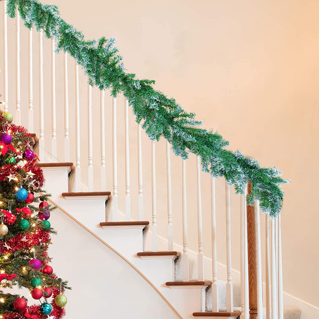 Versuchen Sie, mit diesem wunderschönen Weihnachtskranz eine wunderbare Weihnachtsatmosphäre zu schaffen. Dieser künstliche Ast mit Schneeeffekt ist 290 cm lang und ist: Sie können Spaß daran haben, andere Dekorationen und Lichter daran aufzuhängen oder ihn so zu lassen, wie er ist, er wird Ihrer Umgebung wirklich ein warmes und einladendes Aussehen verleihen. Perfekt für Regale, Möbel, Torbögen, Türen, Kamine, Fensterbänke und jede andere Ecke Ihres Hauses, Büros oder Geschäfts