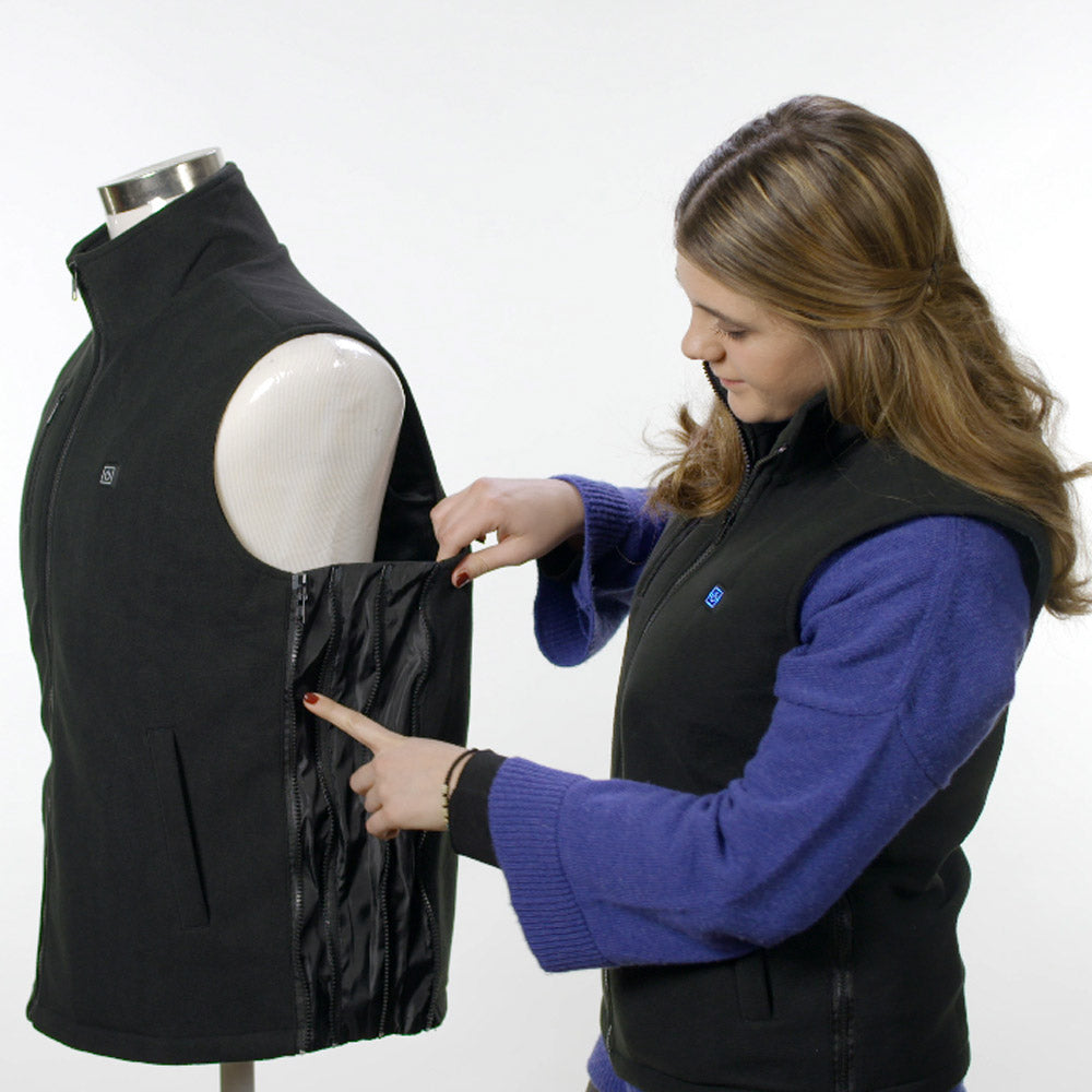 Es ist ratsam, die seitlichen Reißverschlüsse so einzustellen, dass die Heizweste eng am Körper bleibt, um die abgegebene Wärme optimal zu nutzen.