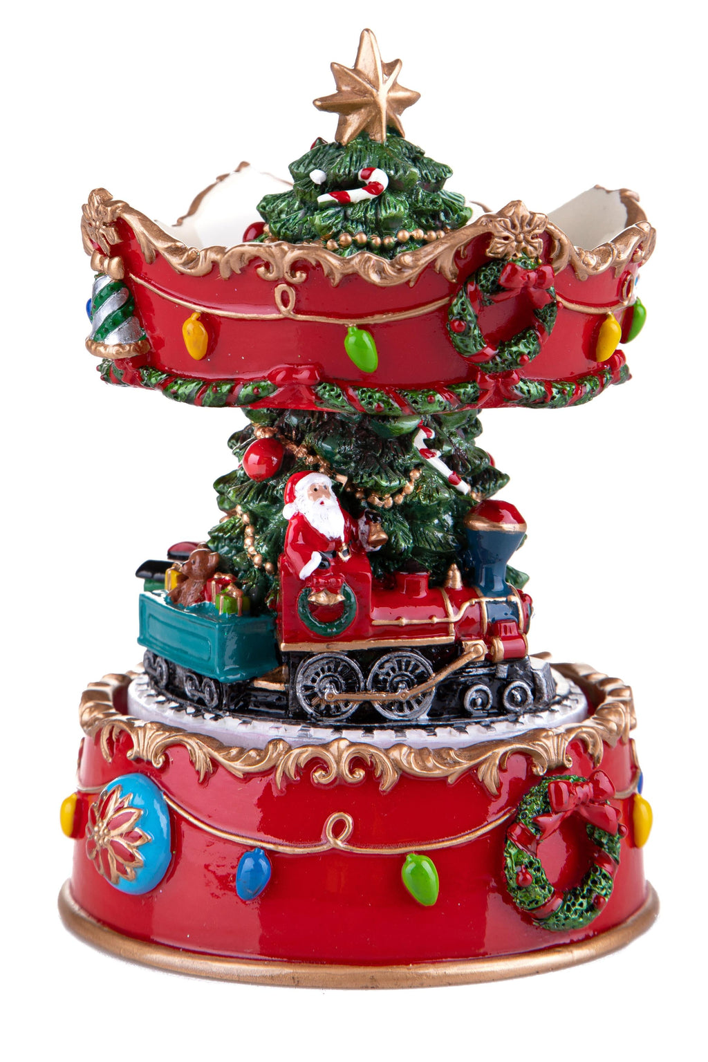 Karussell Glockenspiel mit Schlitten mit Musik und Bewegung H16,5 cm aus Harz