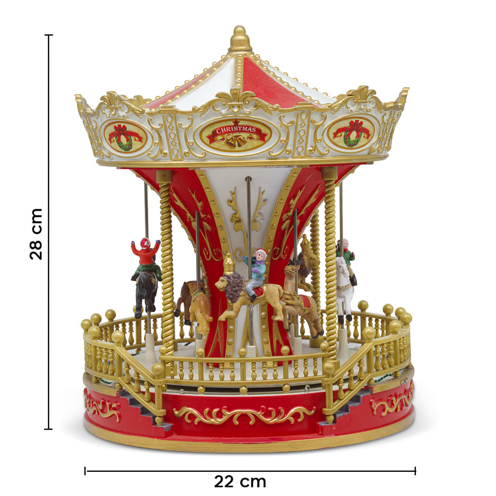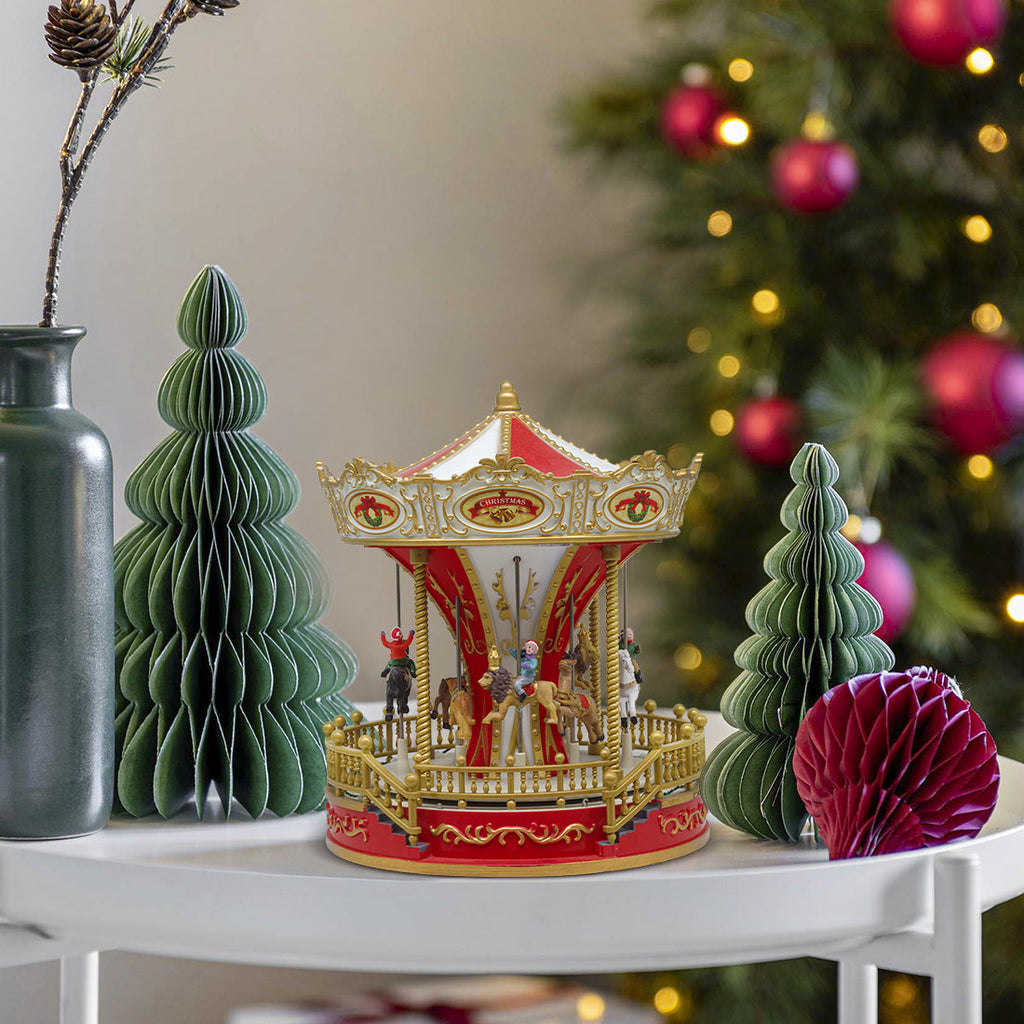 Weihnachtskarussell 22x22x28 cm mit Weihnachtsschmuck, Lichtern, Geräuschen und Bewegung