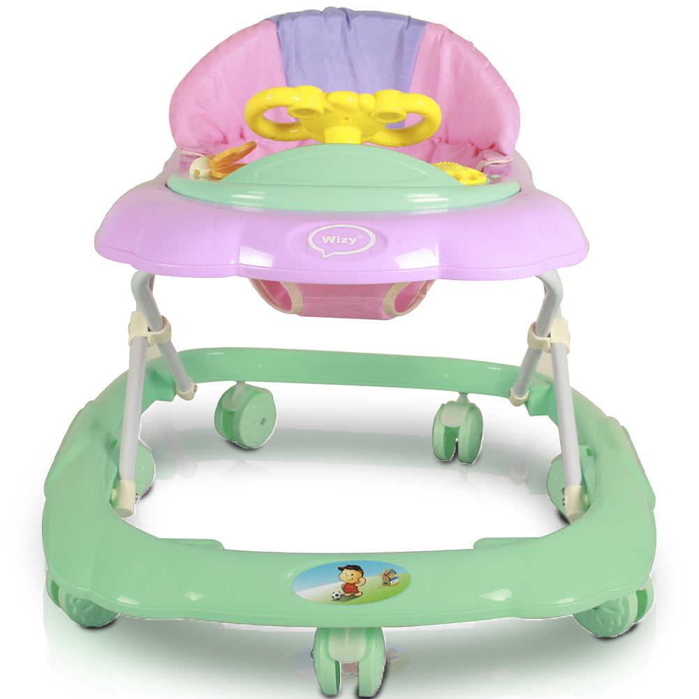 Interattivo e sicuro, il girello è pensato per adattarsi perfettamente ai bambini di diverse altezze perchè tocchino sempre per terra con i piedi.