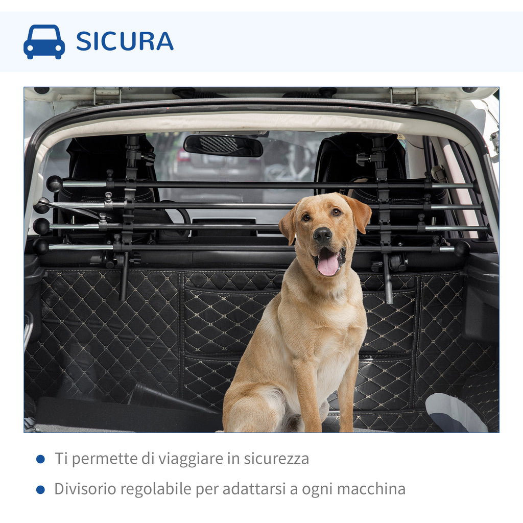 Dieses solide Trenngitter darf in Ihrem Autozubehör für Hunde nicht fehlen. Er ist einfach zu montieren und passt sich dank Höhen- und Breitenverstellung jeder Maschine an. Der Hundeautoteiler besteht aus Eisen und ABS, was seine Solidität und lange Lebensdauer gewährleistet. Wählen Sie dieses Produkt, um sicher mit Ihren Hunden zu reisen!