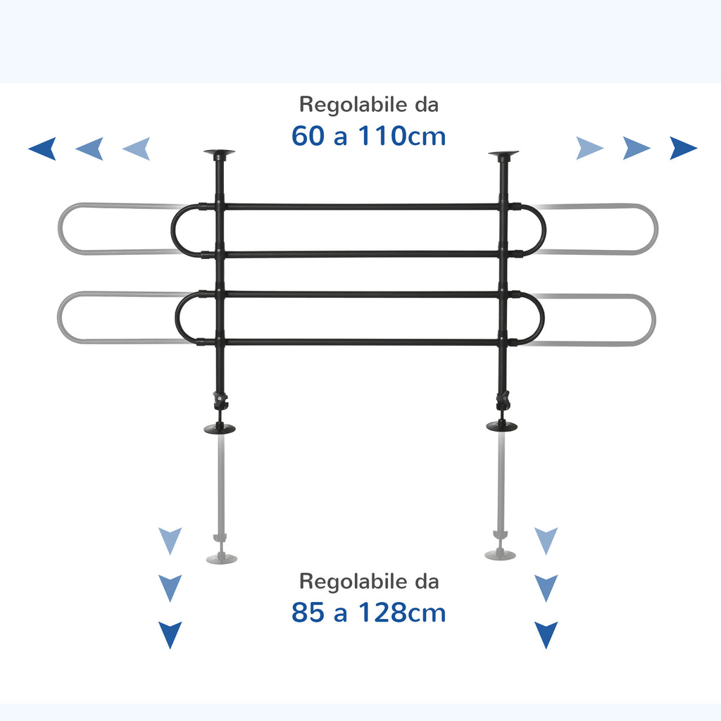 - GRÖSSEN: 87–135 cm (verstellbare Breite) und 60–105 cm (verstellbare Höhe)