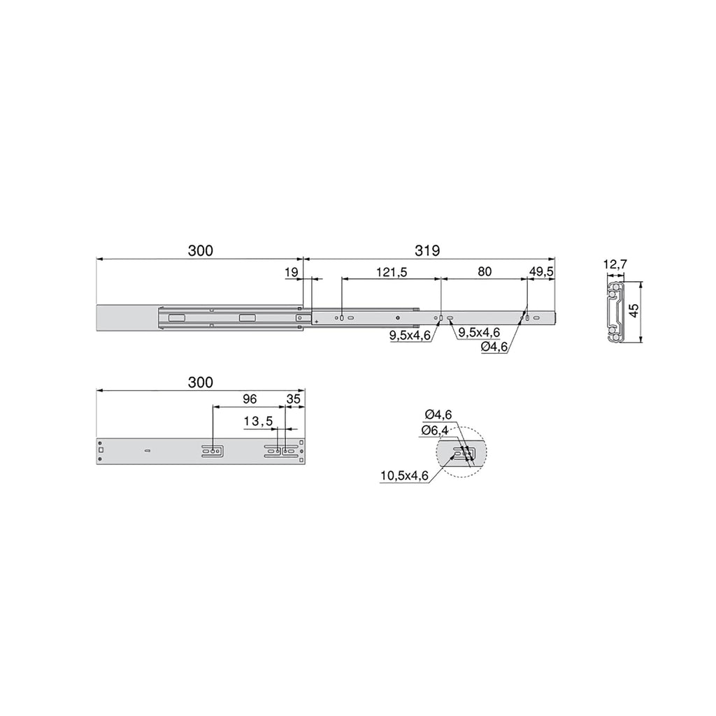 Kugelauszüge für Schubladen mit Vollauszug und Dämpfung H 45 mm L 300 Weiß verzinkter Stahl Emuca
