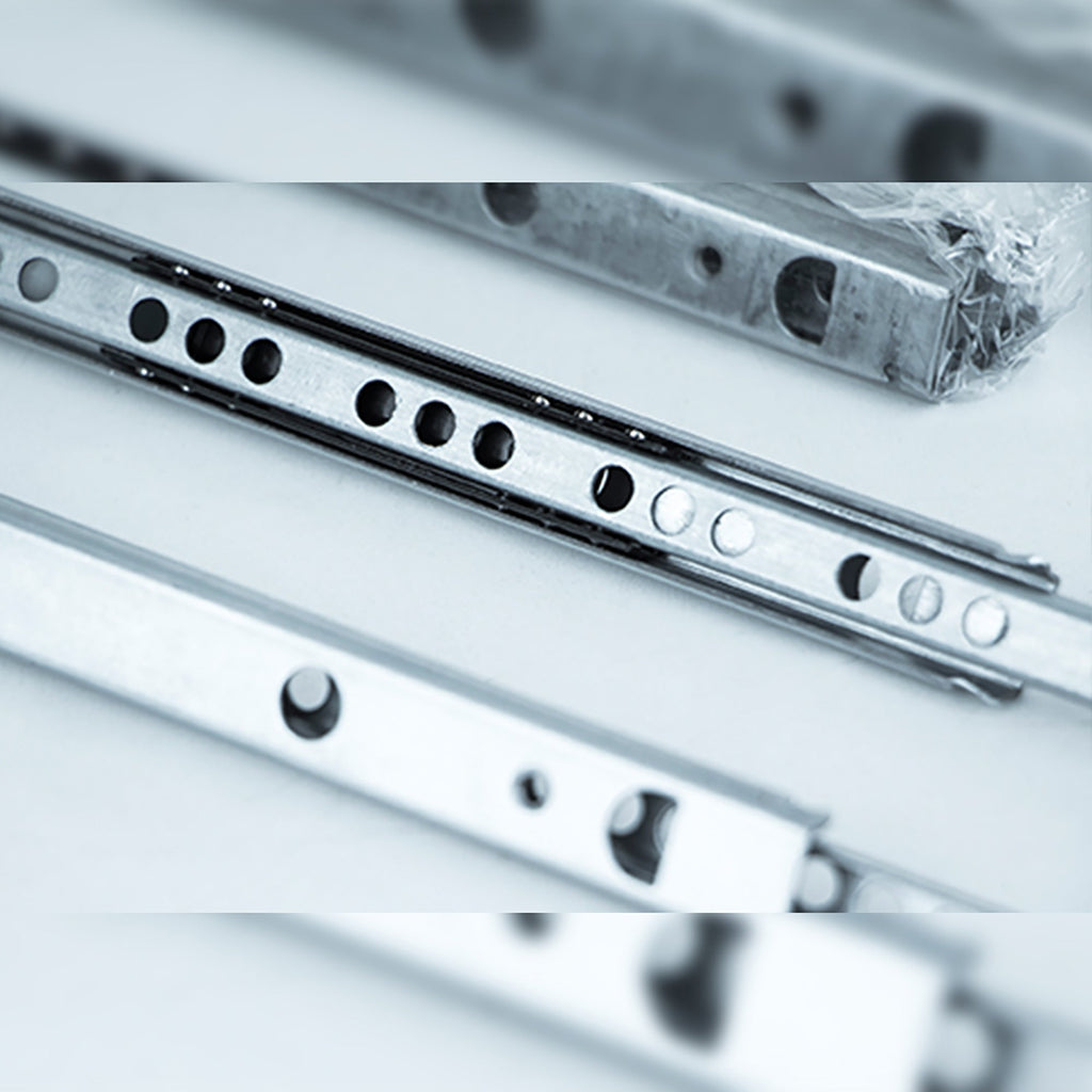 - Kugellagerführungen mit Teilauszug der Schublade.