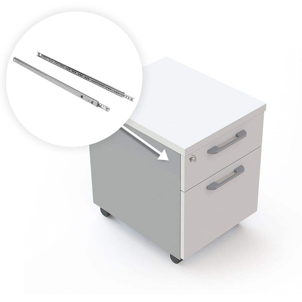 - Kugellagerführungen mit Teilauszug der Schublade.