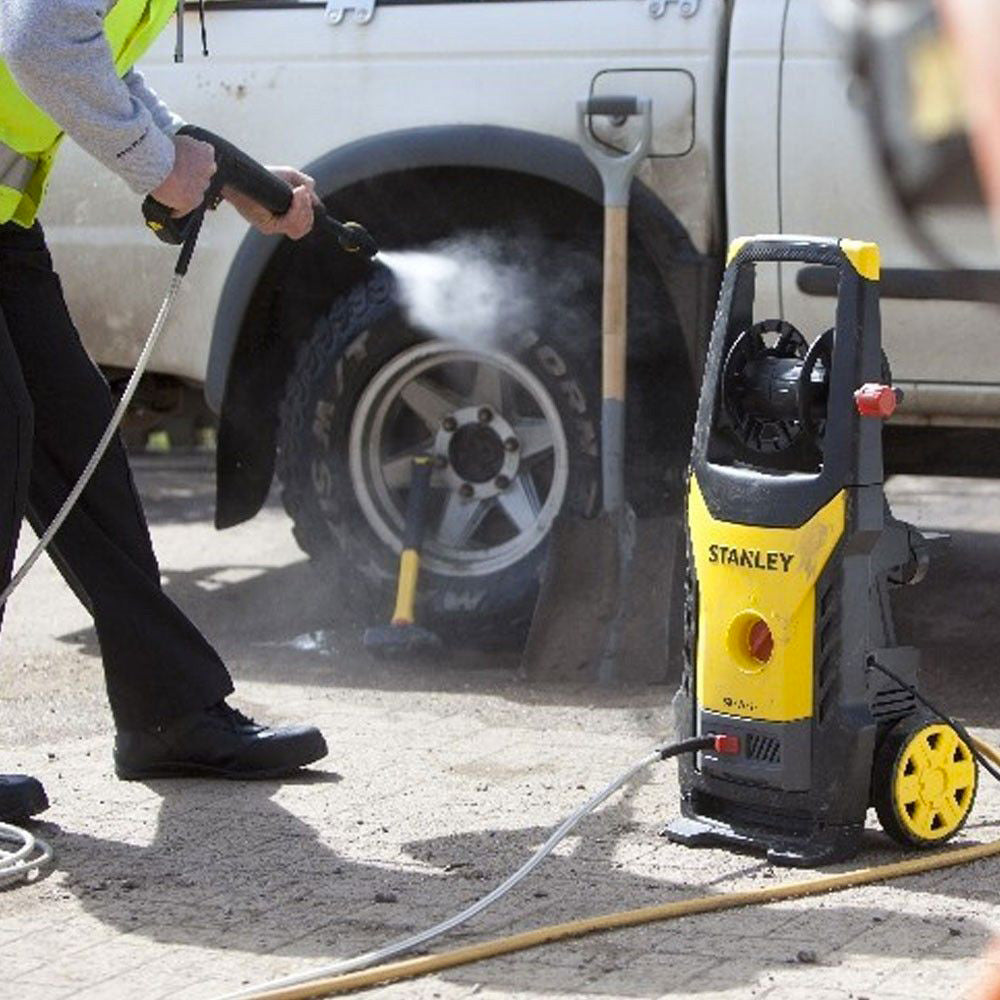 1800 W 130 Bar Kaltwasser-Hochdruckreiniger mit Stanley SXPW19ME Schlauchtrommel