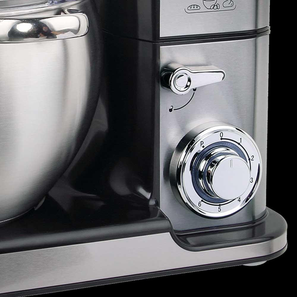 Questa nuova impastatrice planetaria è fornita di un incredibile potenza di ben 2500W, regolabile tramite l'apposita manopola laterale in 6 livelli di velocità + una funzione pulse perfette per tutte le preparazioni, è fornita di un ampia ciotola in Acciaio Inox da 10 L che consente di realizzare impasti in grosse quantità in un unico utilizzo risparmiando tempo ed energia, inoltre il pratico coperchio trasparente oltre a permettere di visualizzare lo stato dell'impasto, protegge dagli schizzi