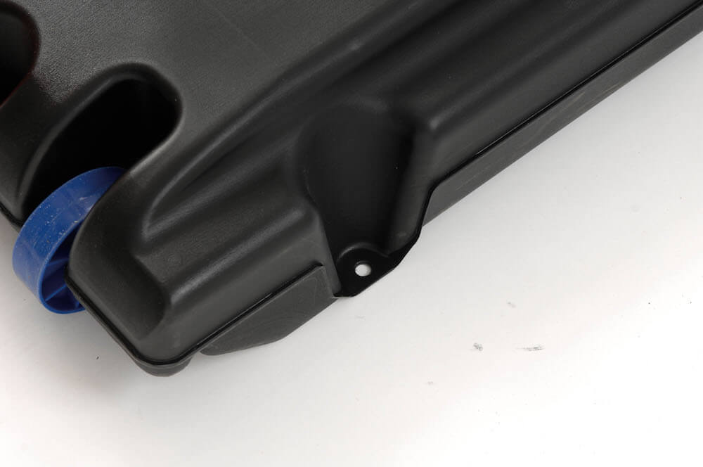 Basis aus schwarzem, geformtem Polyethylen, ausgestattet mit Rädern auf der Vorderseite, die mit Wasser oder Sand gefüllt werden können, um maximale Stabilität während des Spiels zu gewährleisten.
