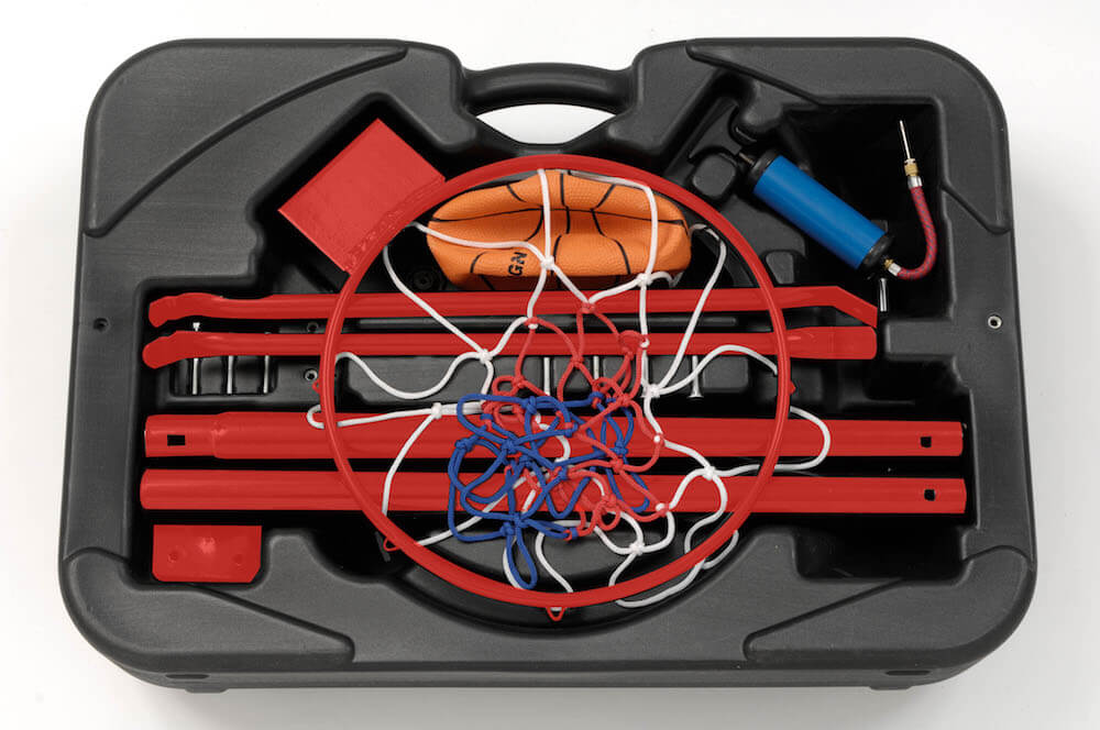 Basis aus schwarzem geformtem Polyethylen, das mit Wasser oder Sand gefüllt werden kann, um Stabilität während des Spiels zu gewährleisten.