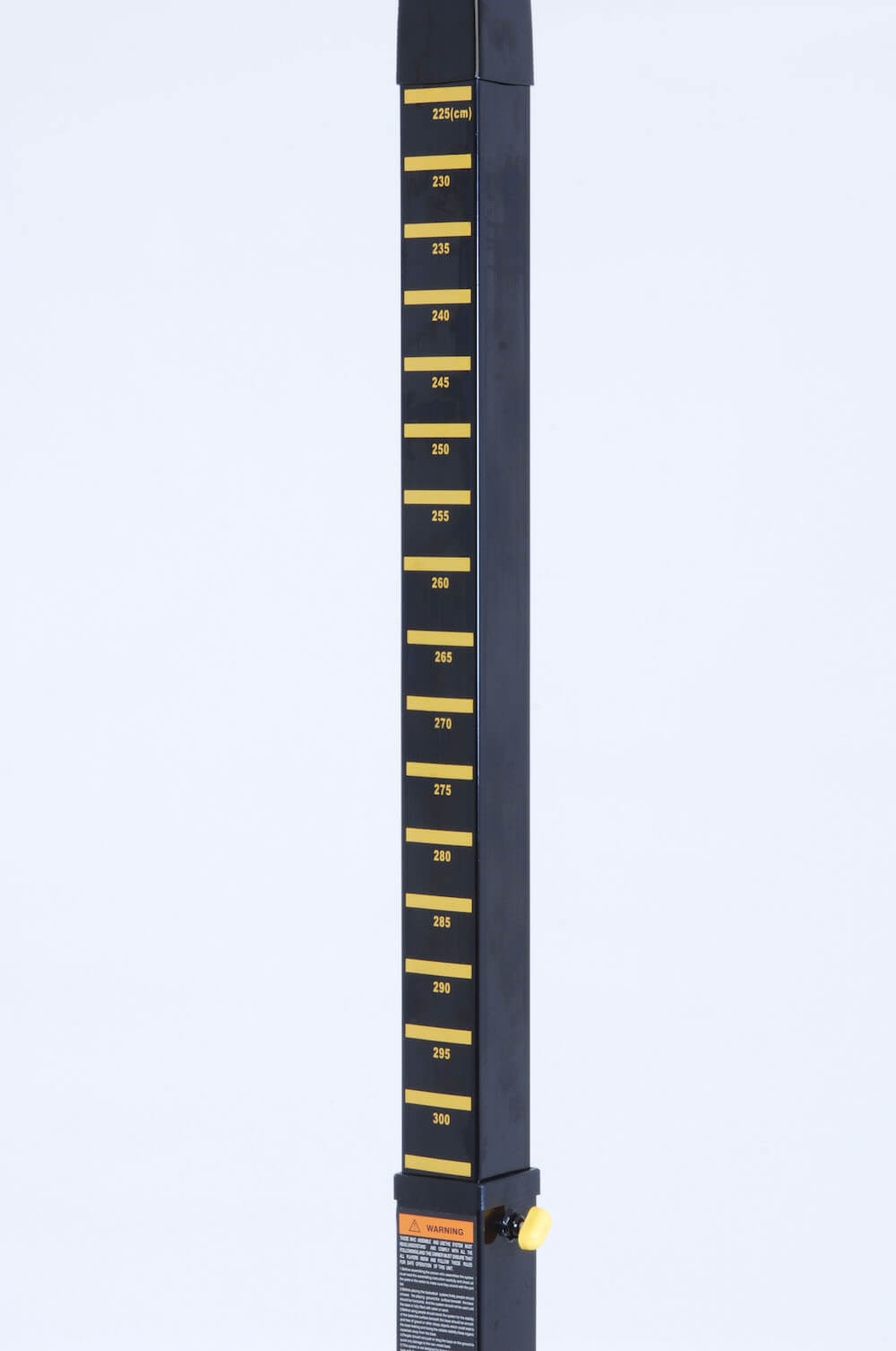 Die Gradskala auf der Vorderseite der Säule zeigt die gewünschte Höhe an und wird durch einen praktischen und sicheren Mechanismus blockiert.