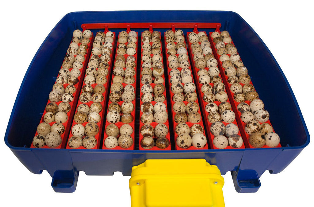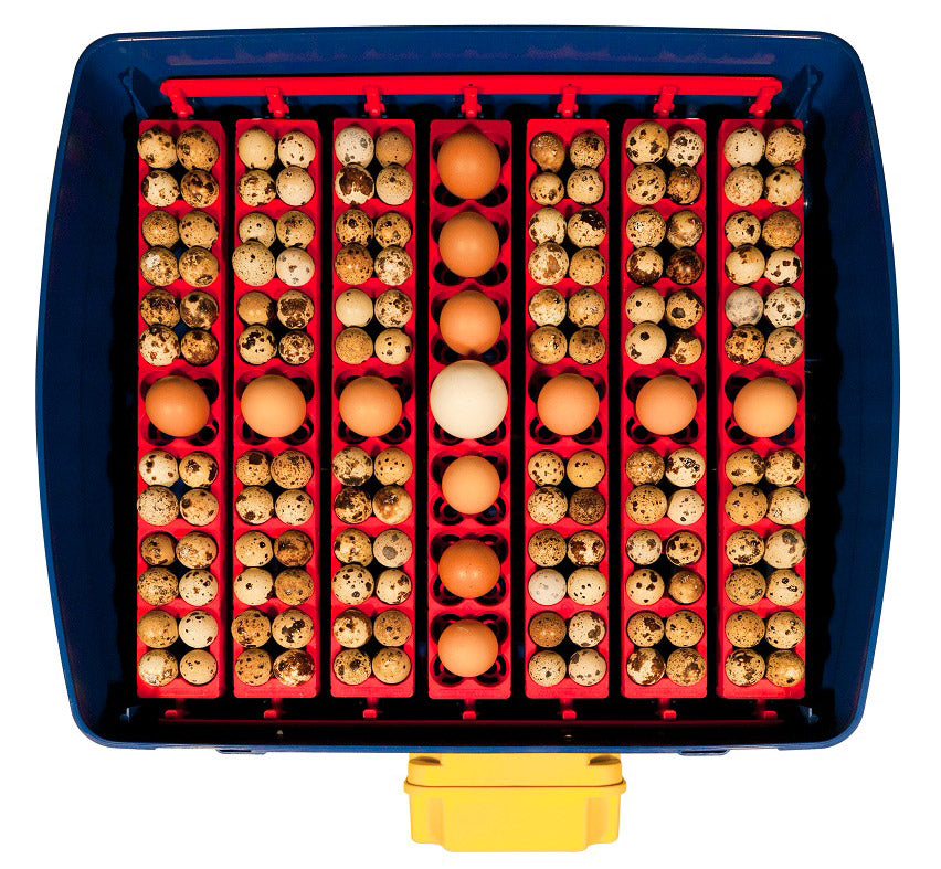 1) UNIVERSELLES TABLETTSYSTEM : Der erste und einzige professionelle Eierhalter der Welt, der jede Art von Ei vertikal aufnehmen kann, von Gänseeiern bis hin zu Wachteleiern. Tatsächlich können Sie in jeden einzelnen Schlitz einlegen: 1 Hühnerei (oder von größeren Arten) oder 4 kleine Eier, bis zu insgesamt 96 Wachteleiern. Ein innovatives System in der Eierlogistik, das es Ihnen ermöglicht, so viele Eier wie möglich auf kleinem Raum unterzubringen und so den Energieverbrauch drastisch zu senken. HINWEIS: Die vertikale Position der Eier während der Inkubation ist die gleiche wie in den industriellen Brütereien der neuesten Generation. Es garantiert immer deutlich höhere Schlupfprozente als Eier, die in den alten, technisch veralteten Brutmaschinen horizontal bebrütet werden.