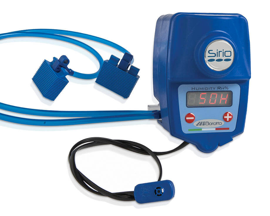 Während des Betriebs zeigt SIRIO auf dem Display den tatsächlichen Feuchtigkeitswert im Inneren des Inkubators und den zuvor vom Benutzer eingestellten Wert an.