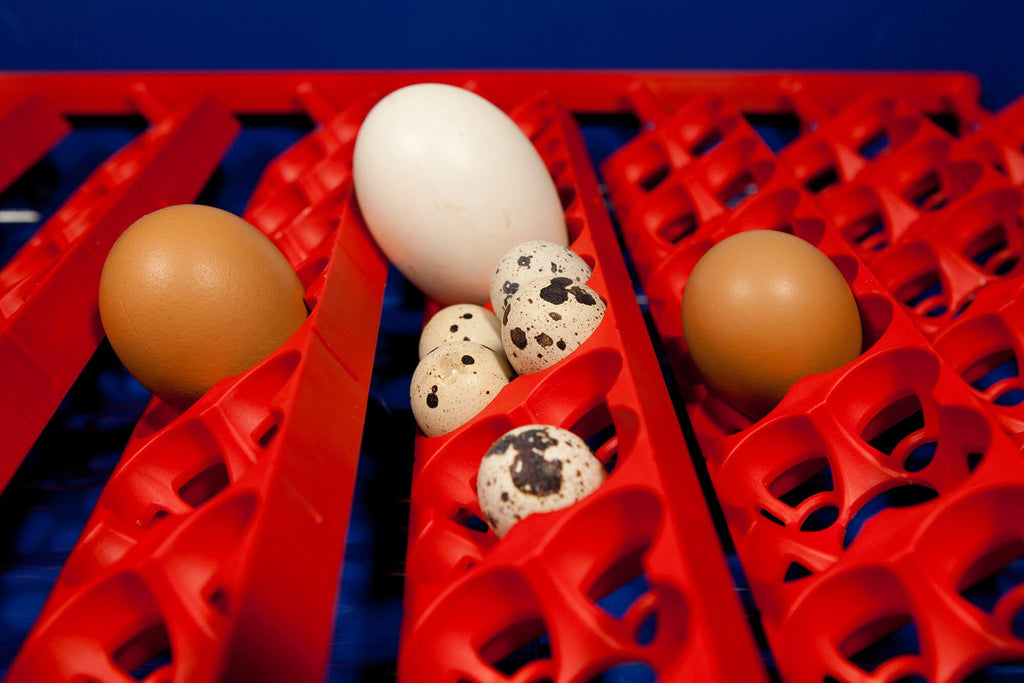 AUTOMATISCHE ROTATION DER EIER: Während der gesamten Dauer der Inkubationsphase dreht REAL 49 die bebrüteten Eier vollautomatisch. Die Eier werden von rechts nach links gekippt (und umgekehrt). Der komplette Zyklus dauert 1 Stunde und folgt dem gleichen Prozess, der in industriellen Brütereien verwendet wird.