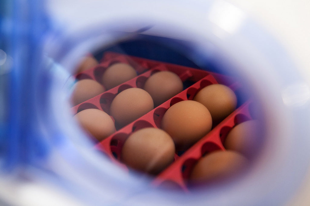 HINWEIS: Die vertikale Position der Eier während der Inkubation ist die gleiche wie in den industriellen Brütereien der neuesten Generation. Es garantiert immer deutlich höhere Schlupfprozente als Eier, die in den alten, technisch veralteten Brutmaschinen horizontal bebrütet werden.