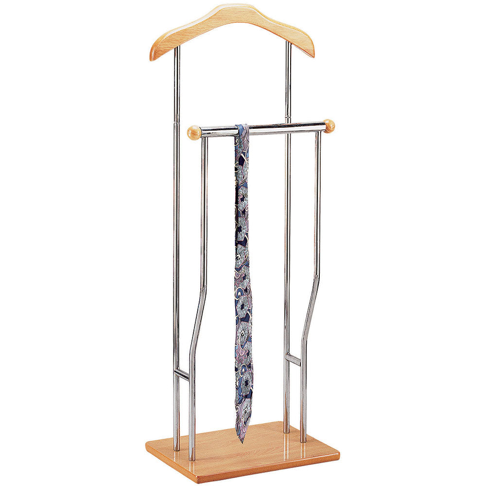 Herrendiener aus verchromtem Stahl und buchefarbenem Holz. Mit einem einfachen und nüchternen Design ist es die ideale Lösung, um Ihre Kleidung im Schlafzimmer anzuvertrauen. Die Kombination aus verchromtem Stahl und Holz macht es zu einer Ergänzung, die für jeden Stil geeignet ist.